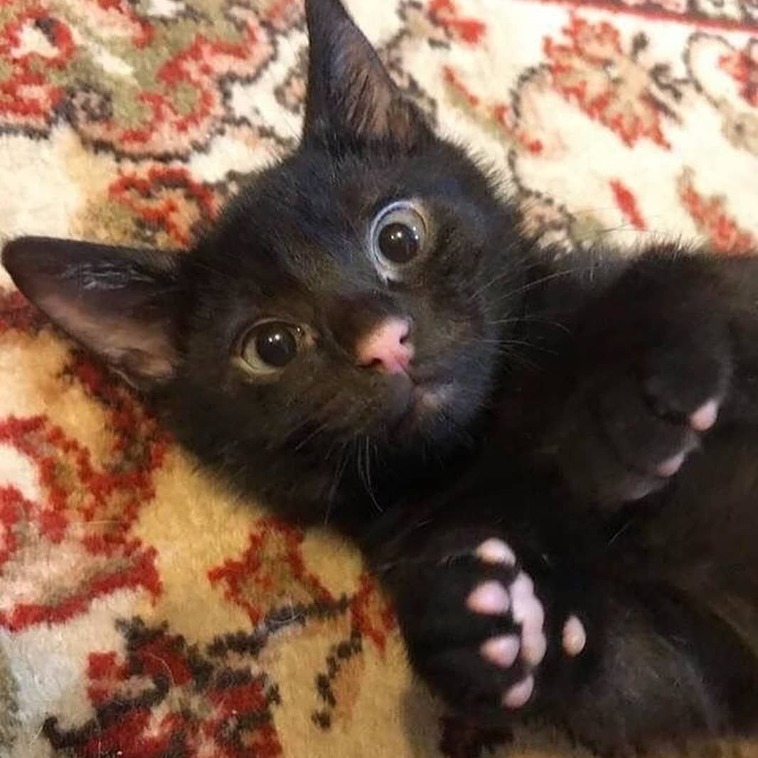 Черная кошка с розовым носом