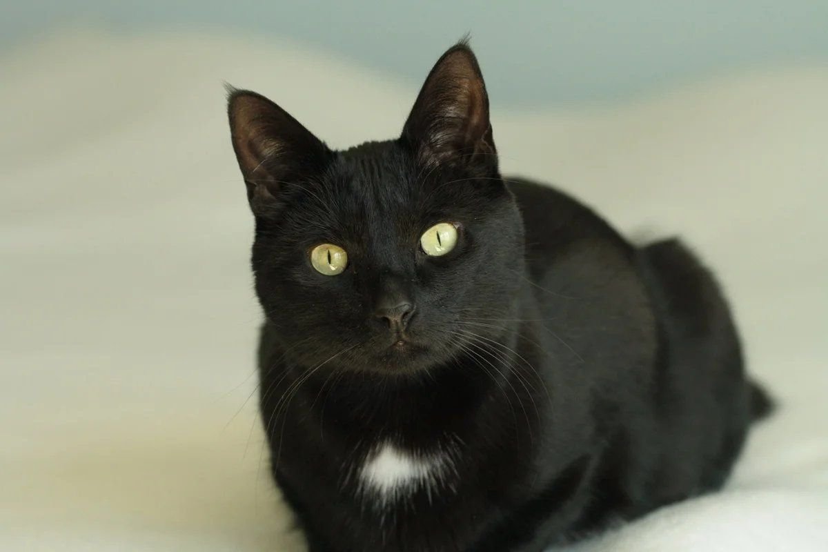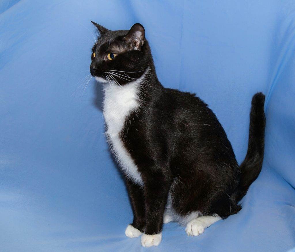 Черная кошка с белой грудкой порода гладкошерстная