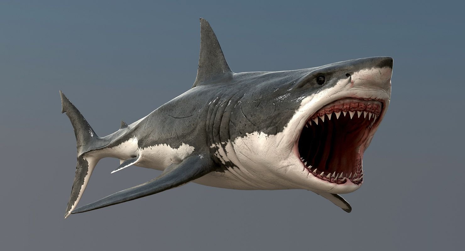Акула с раскрытой пастью сбоку