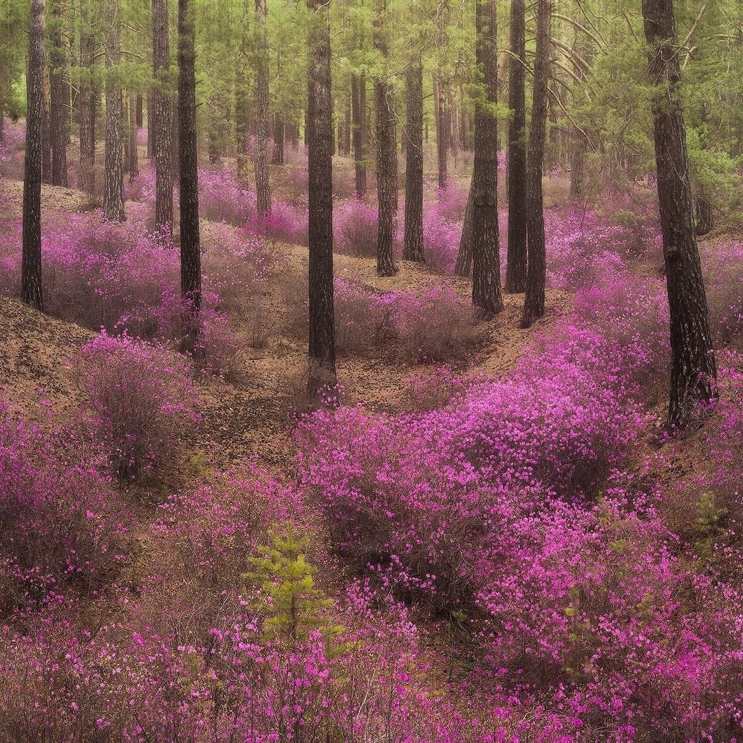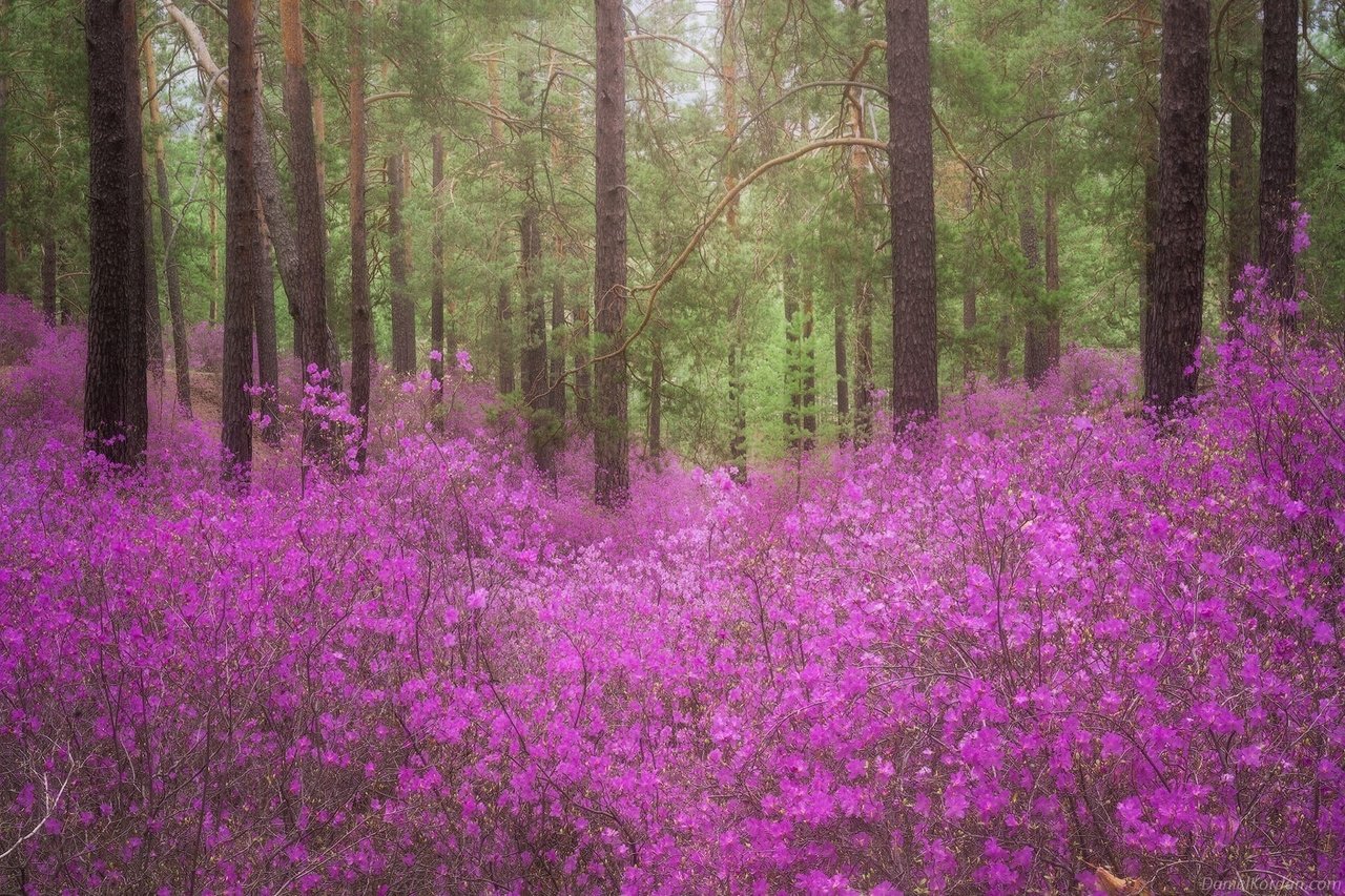 Цветение багульника в Забайкалье