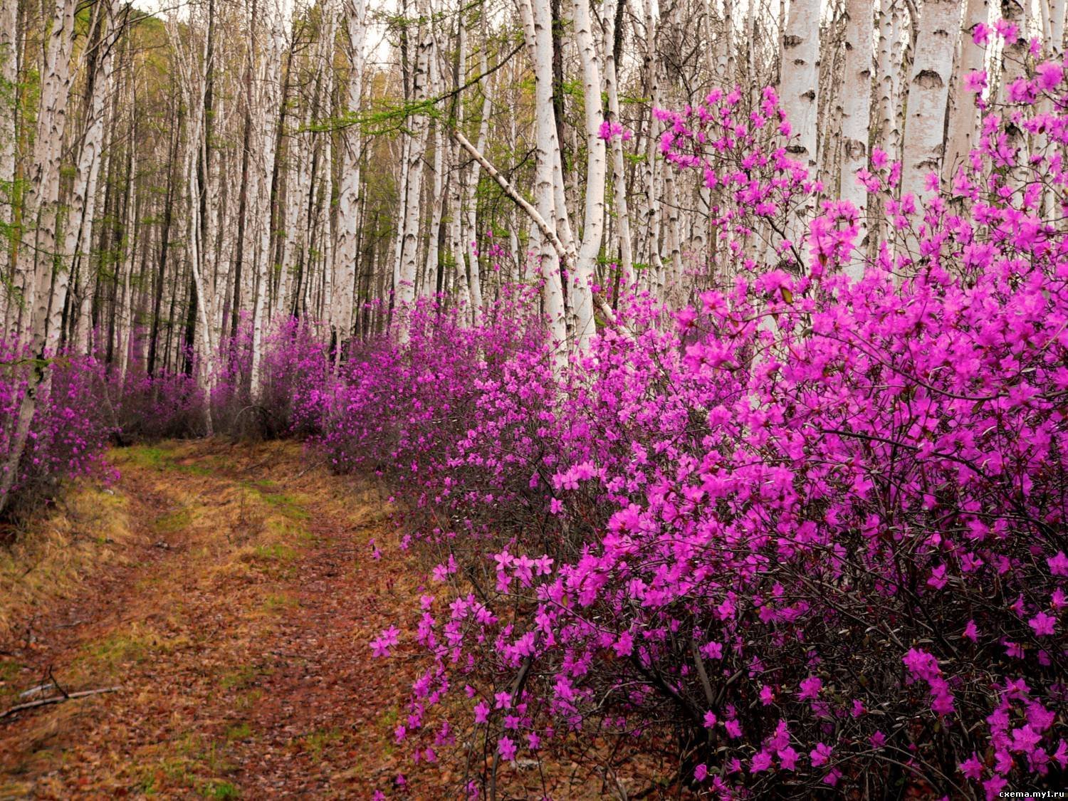 Рододендрон Даурский в березовой роще