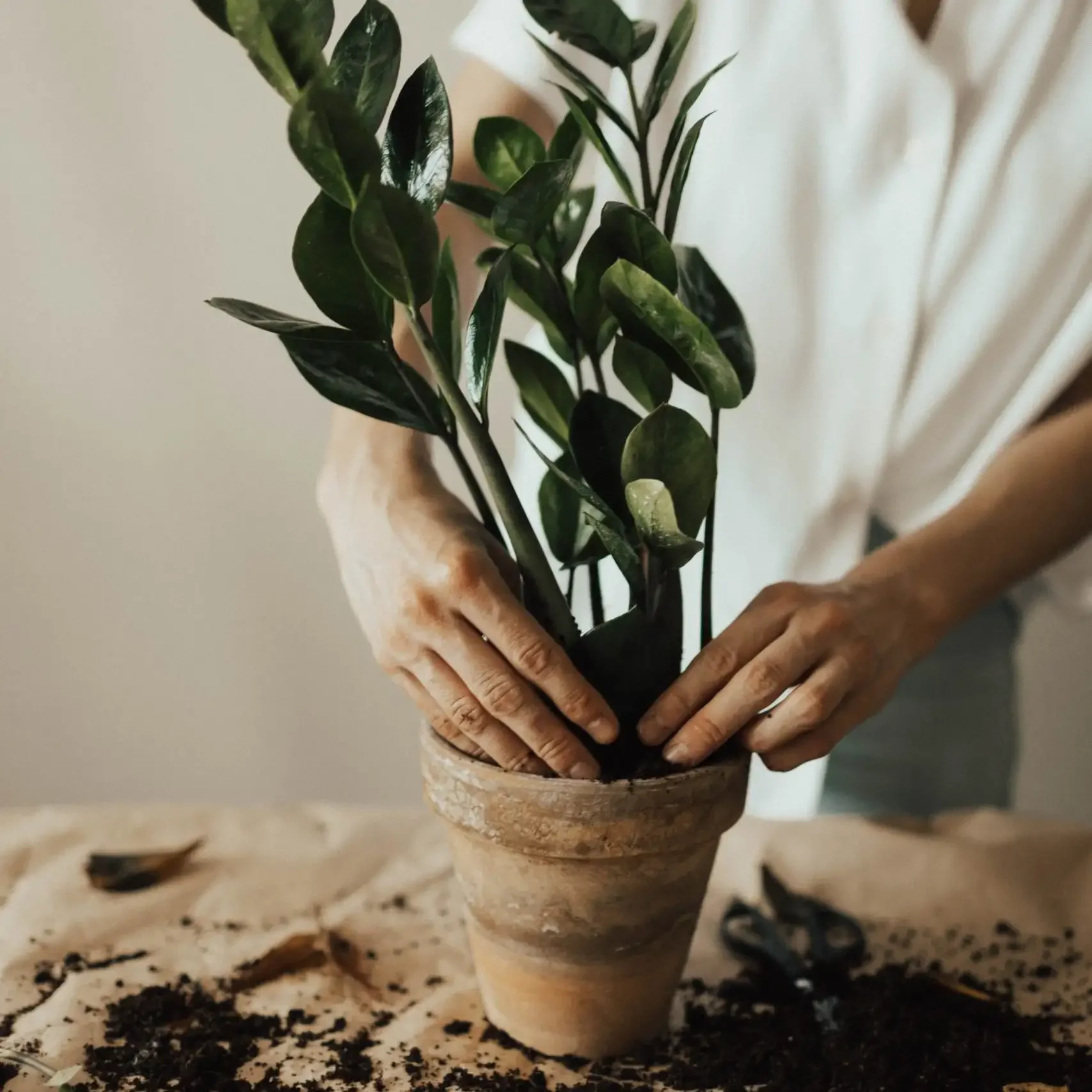 Взрослый мужчина с растением