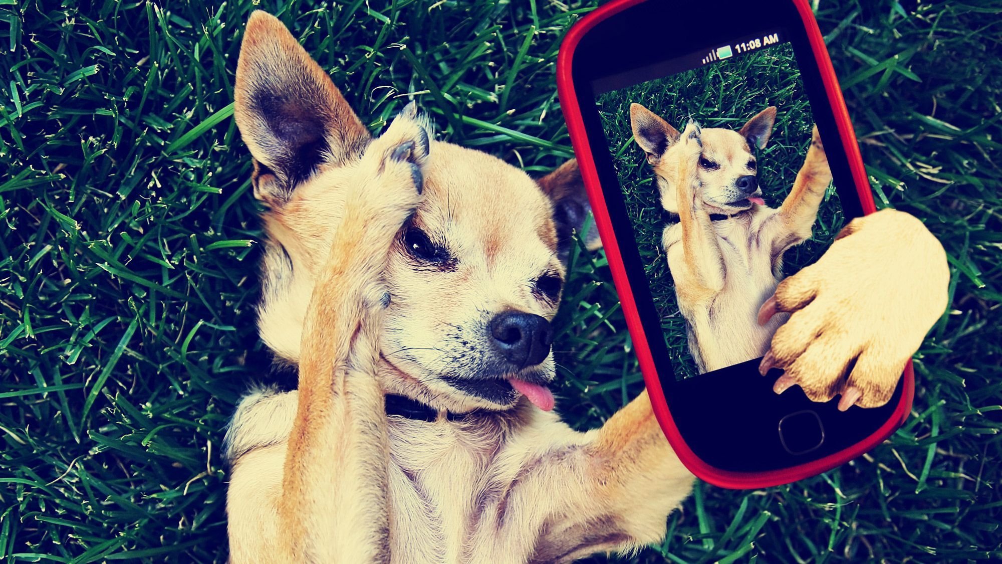 Девушка с собакой селфи