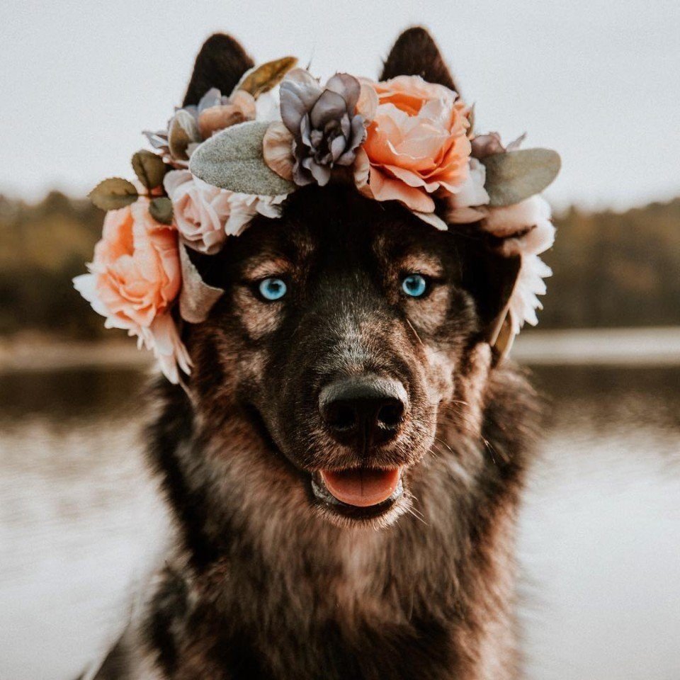 Собака в венке
