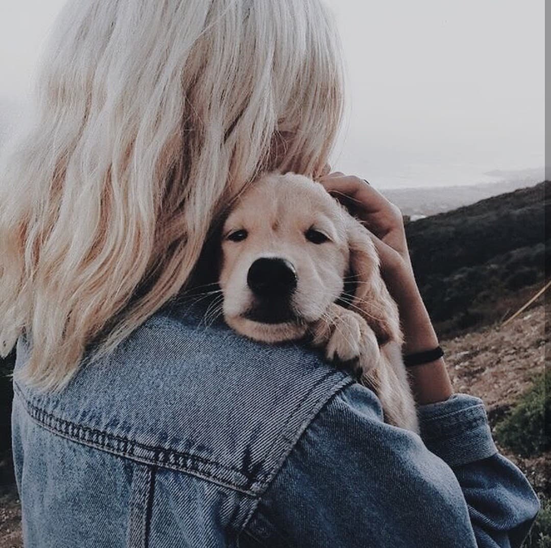 Девушка с щенком на руках