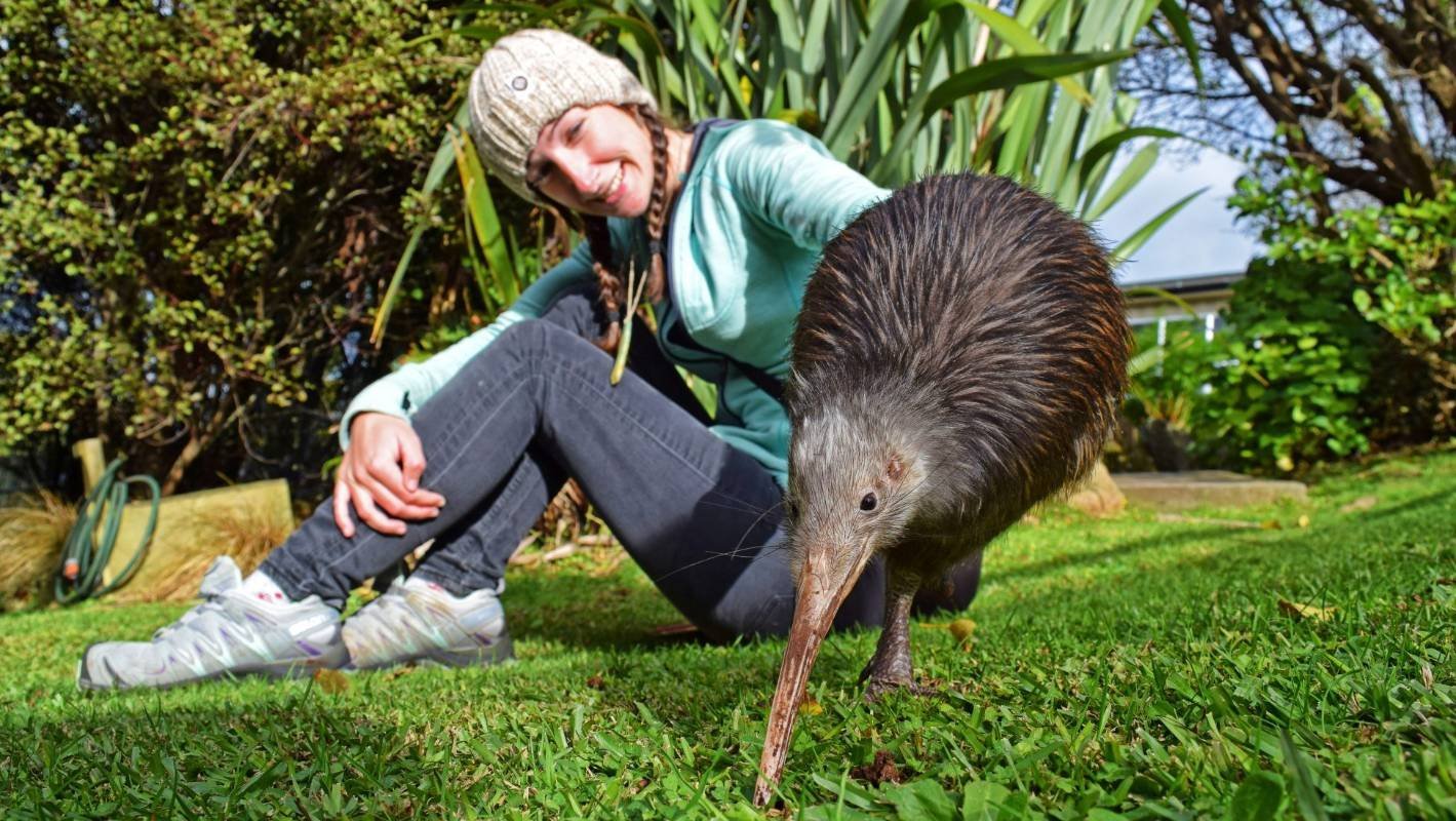 Птица киви с человеком