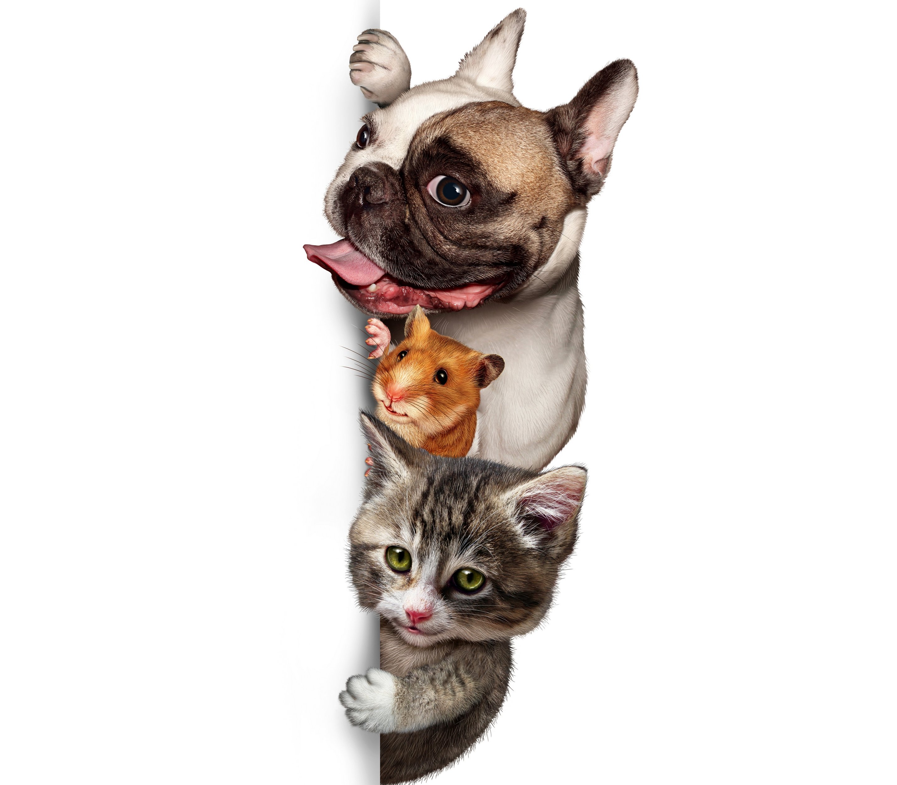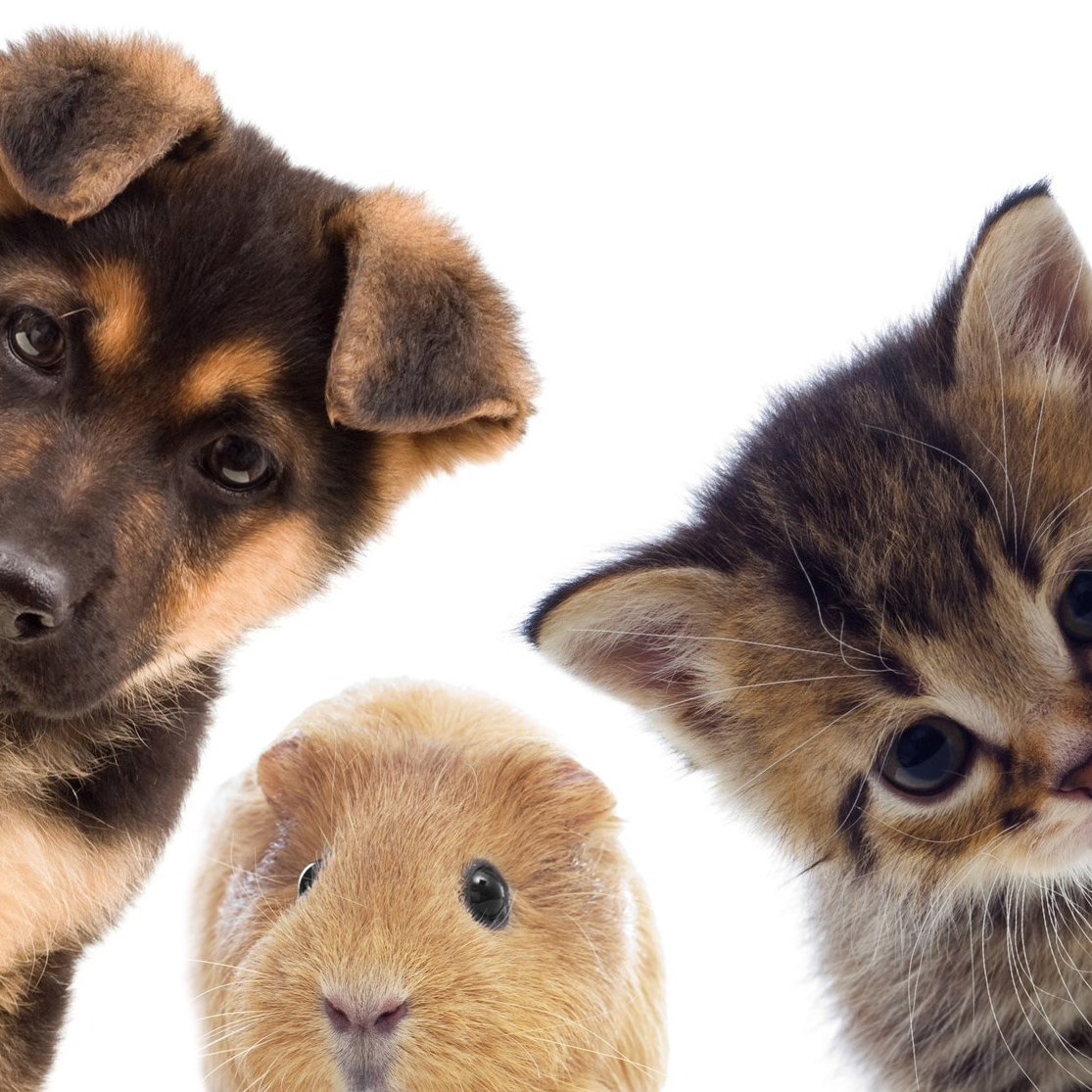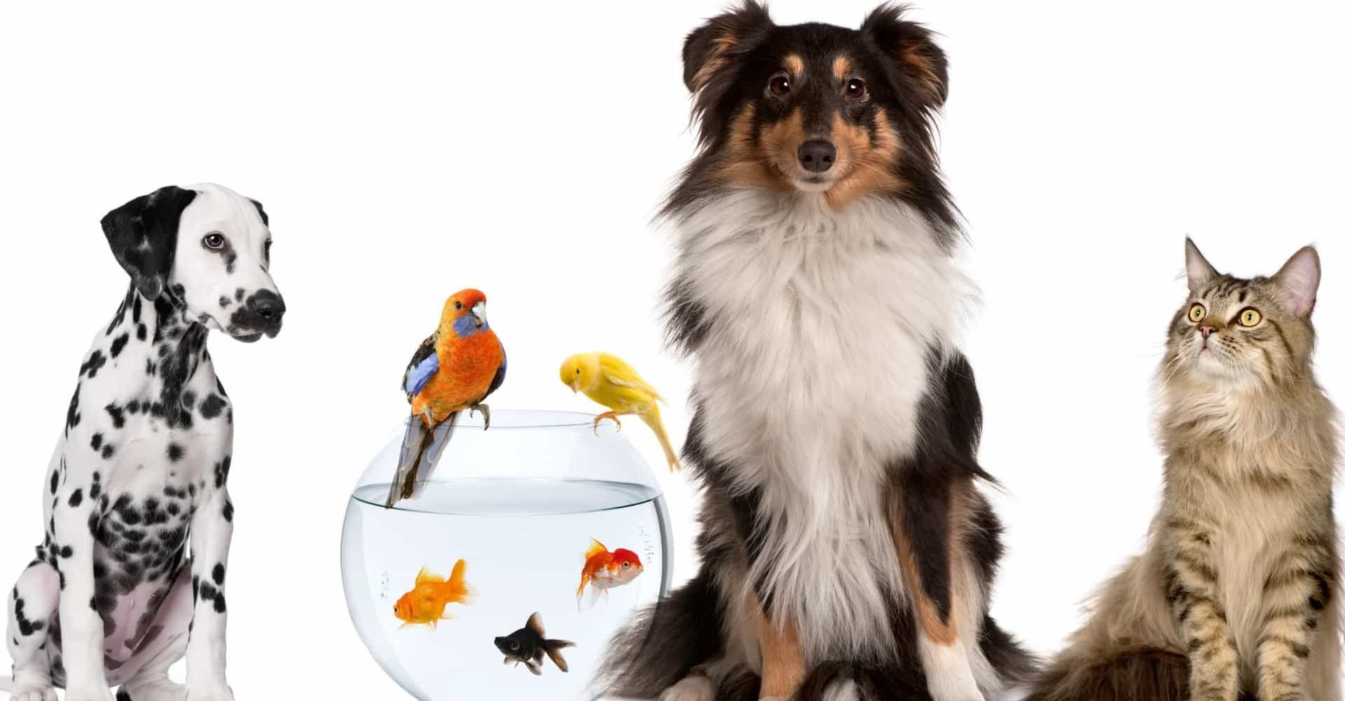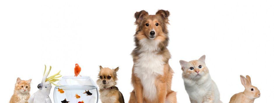 Домашние питомцы на белом фоне
