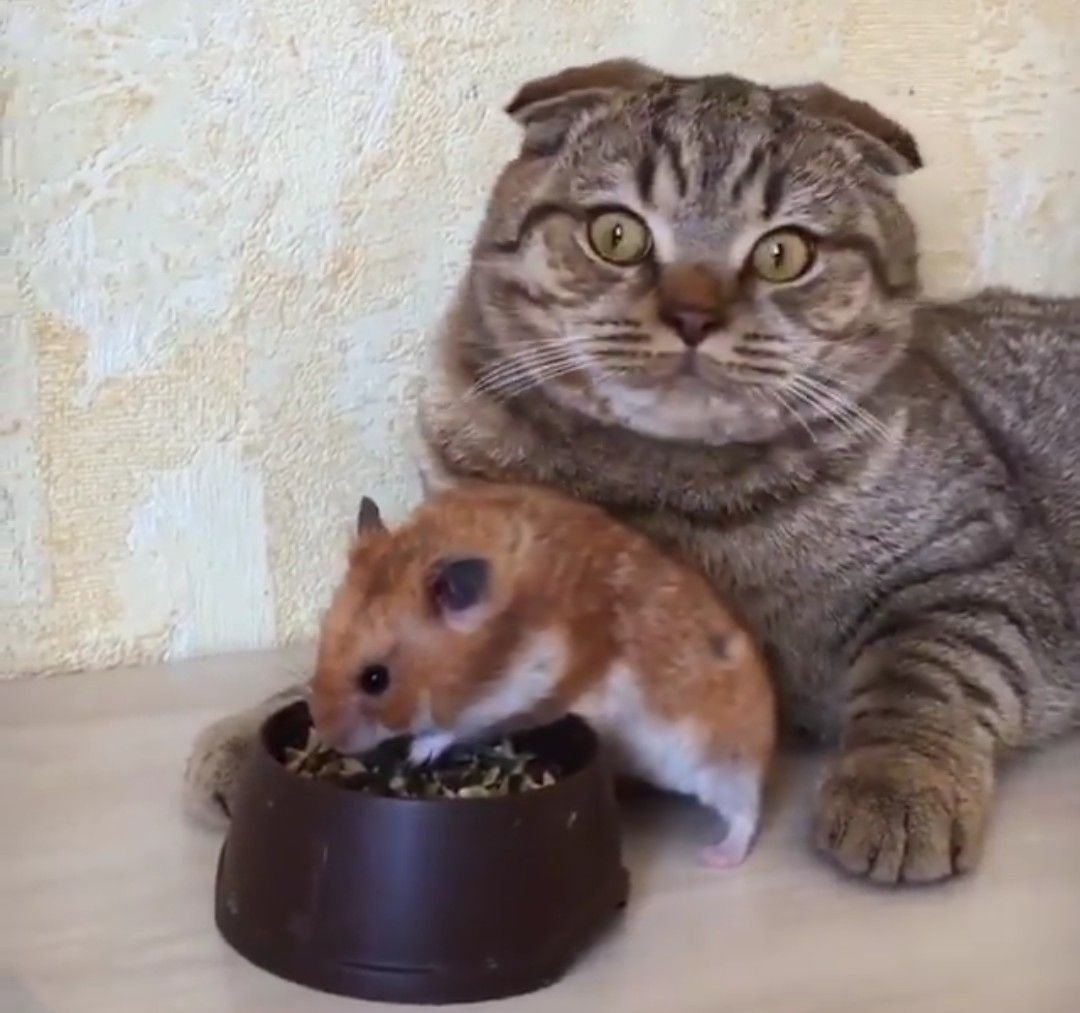 Кошка и хомяк