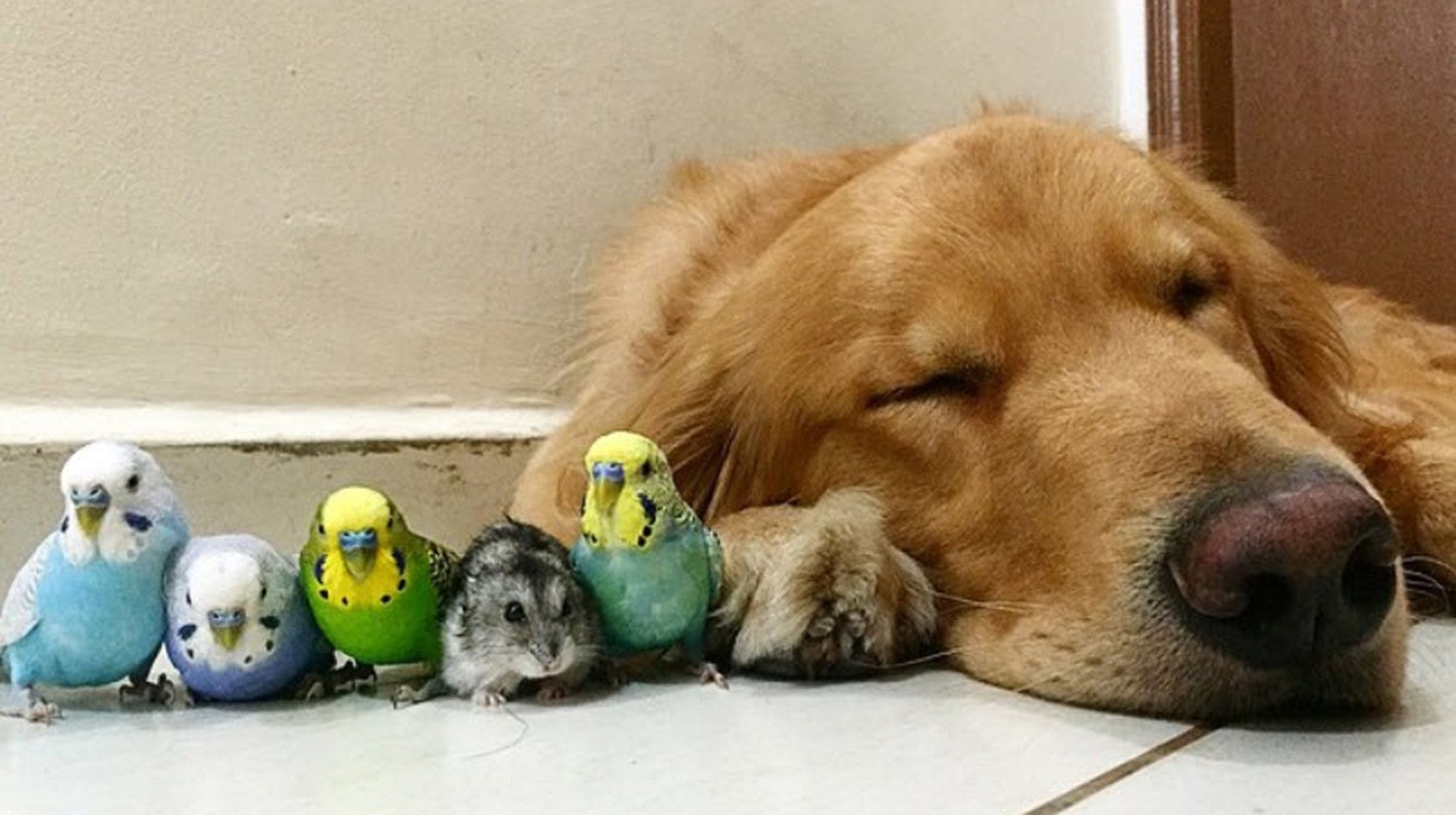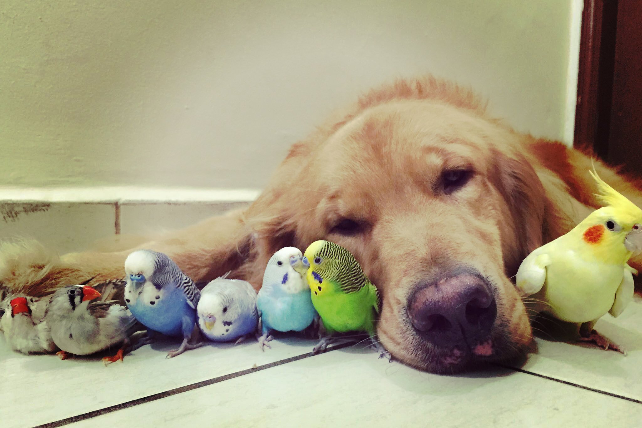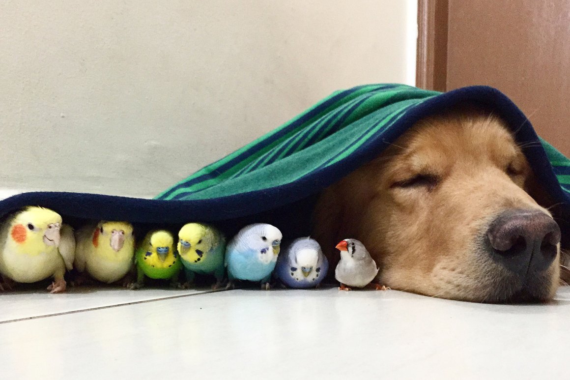 Золотистый ретривер и попугай