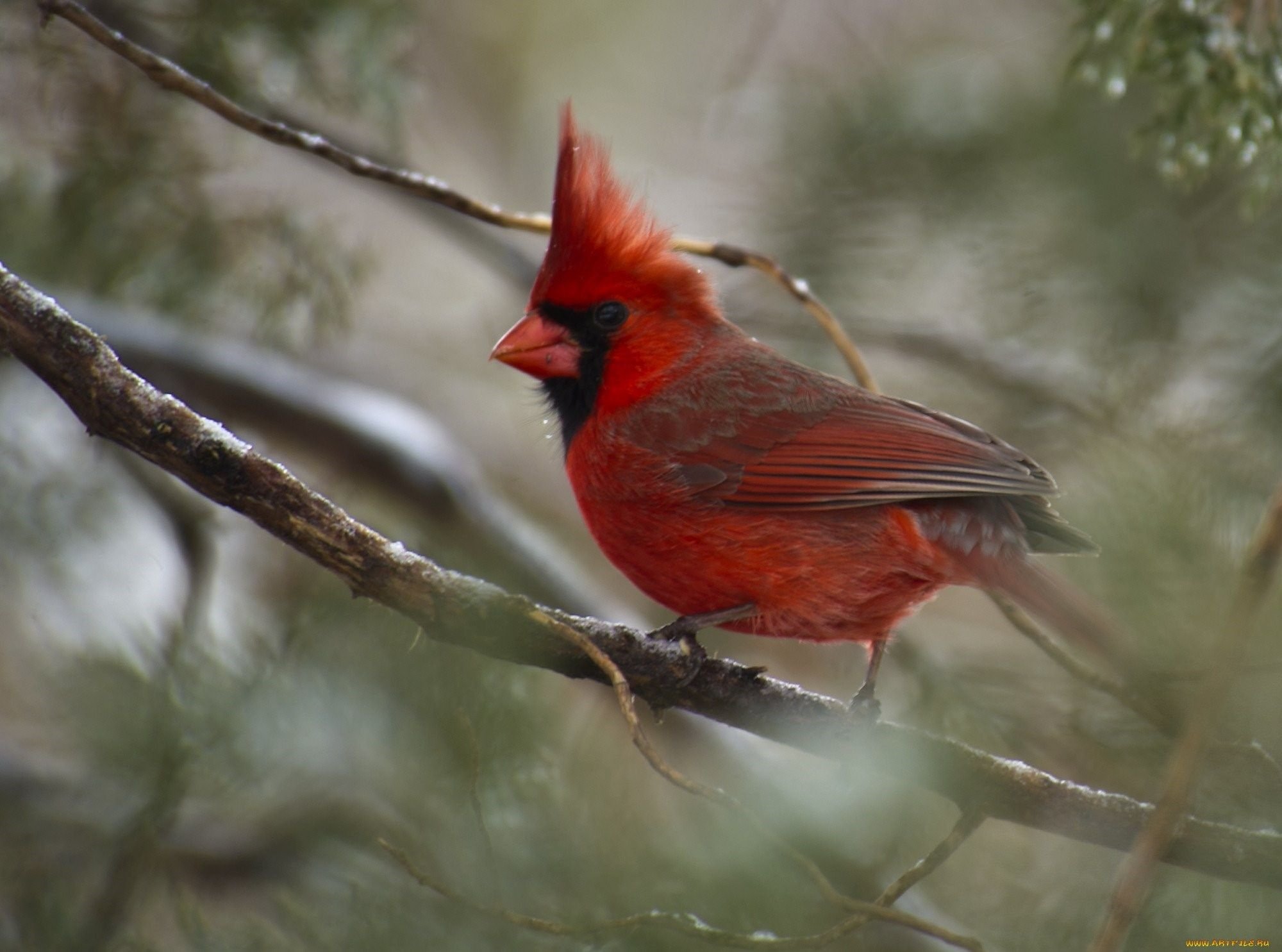 Кардинал с красным хохолком