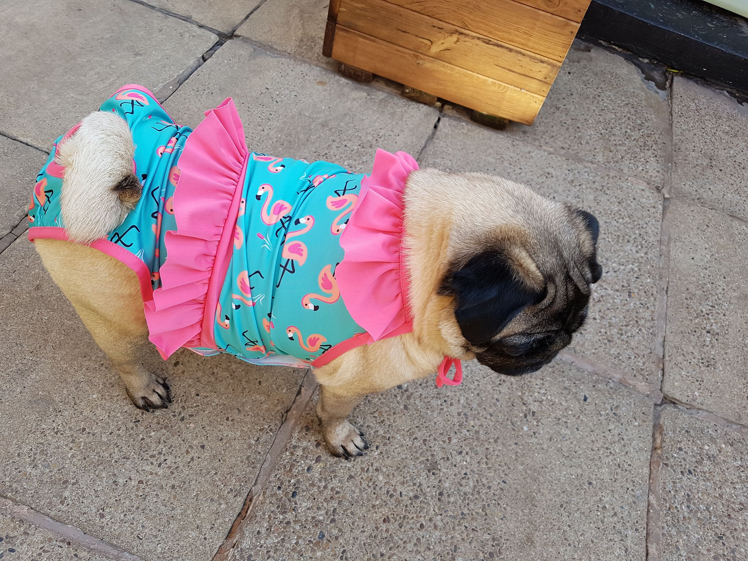 Мопс в купальнике