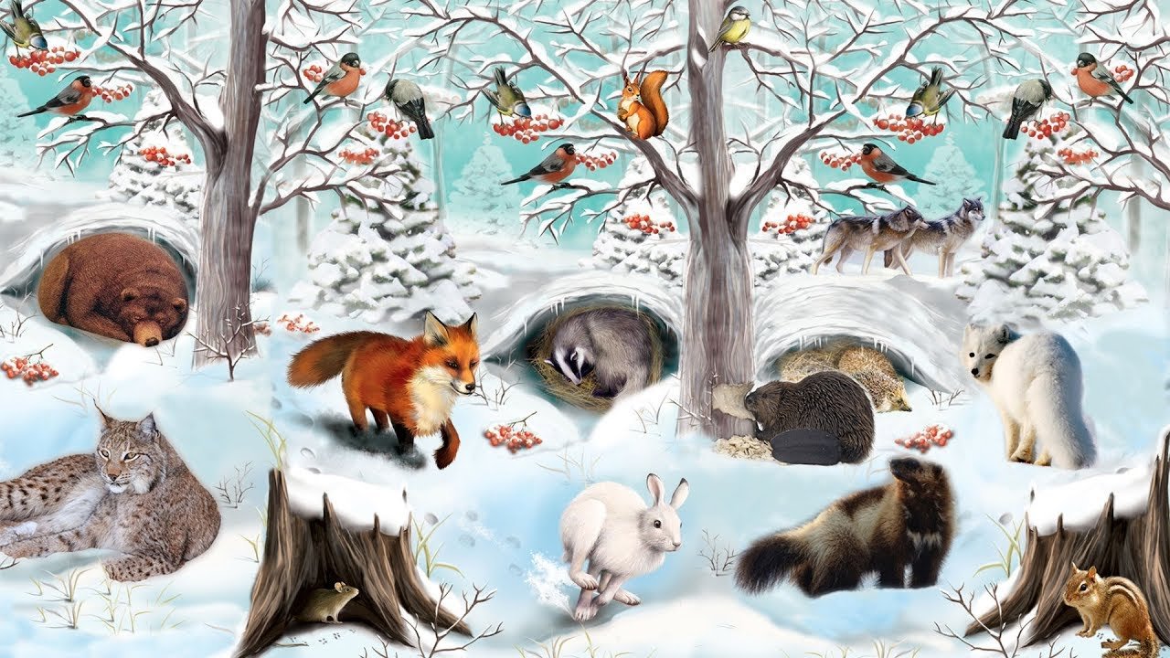 Животные в зимнем лесу