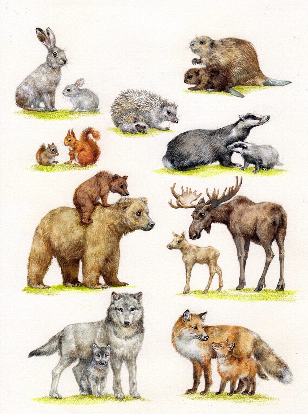 Лиса, волк, заяц, ёж, медведь, белка