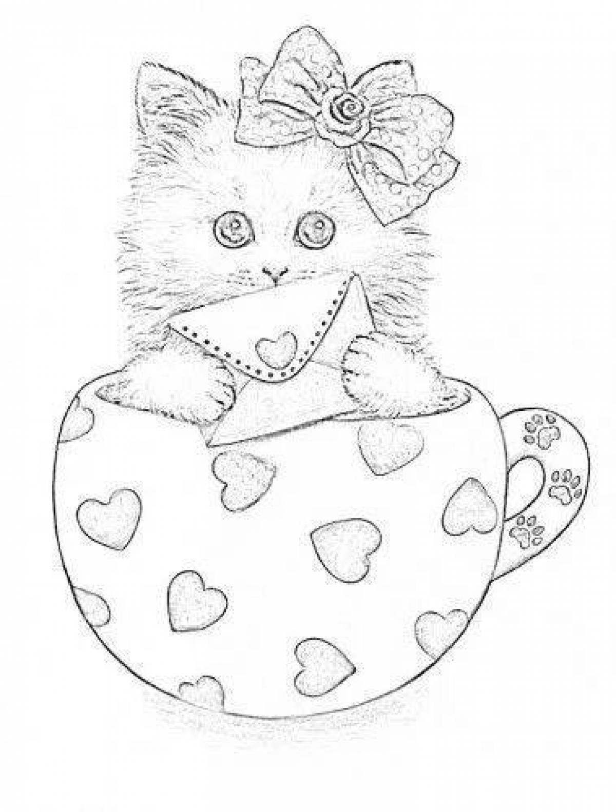 Раскраска котик в чашке