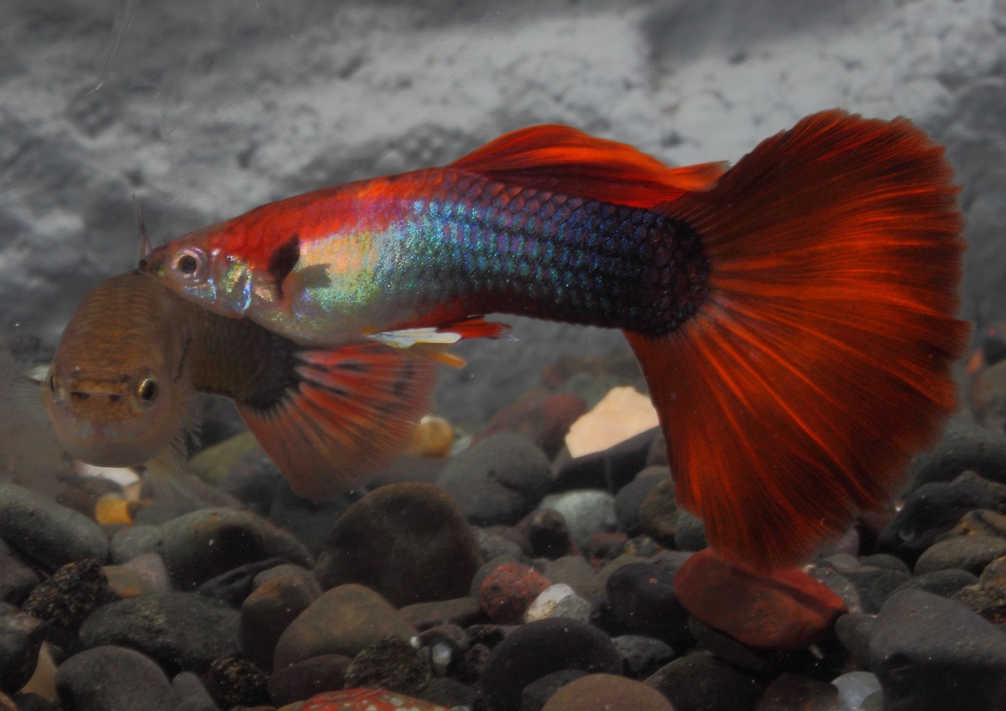 Аквариумные рыбки гуппи красный дракон