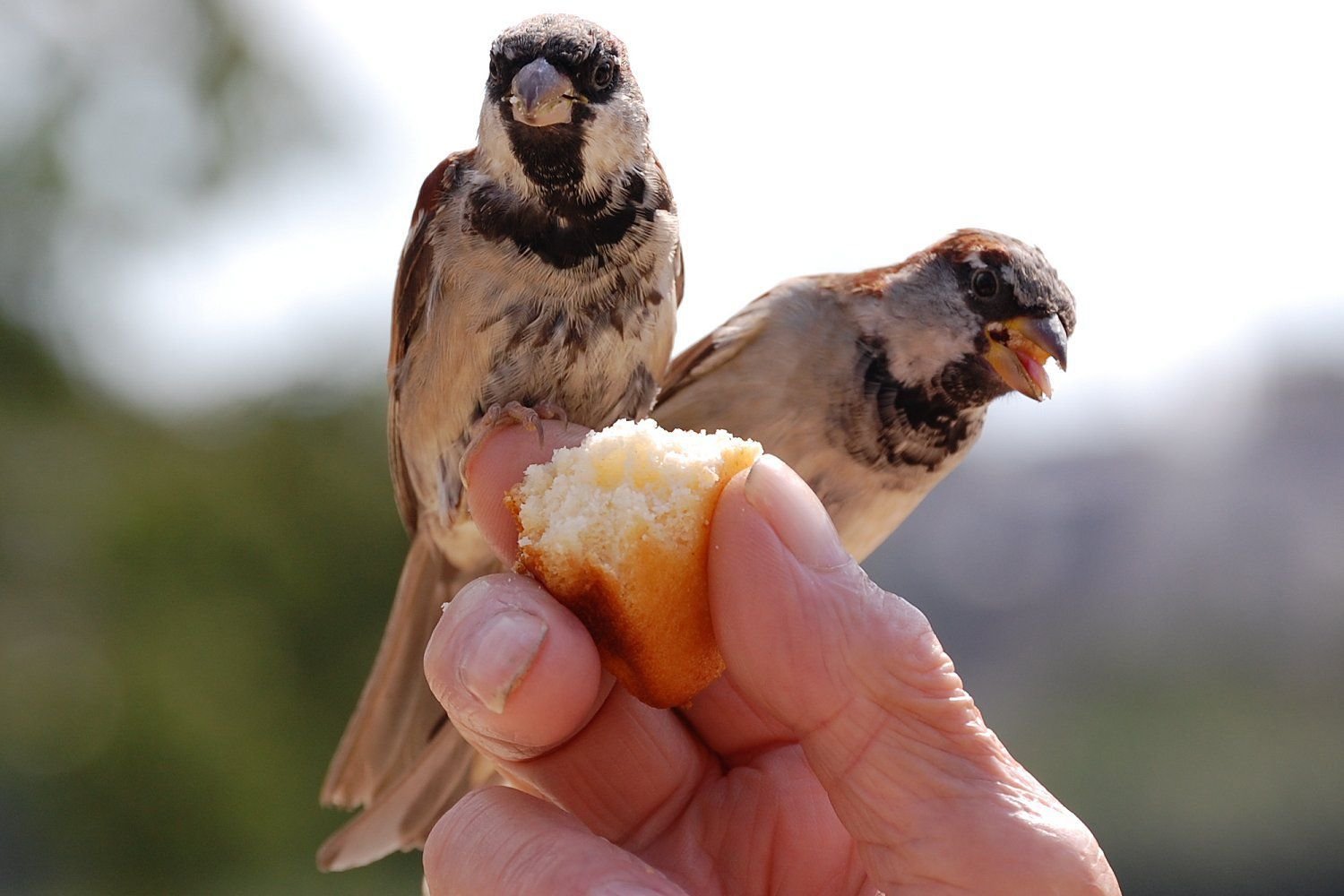 Птицы едят хлеб