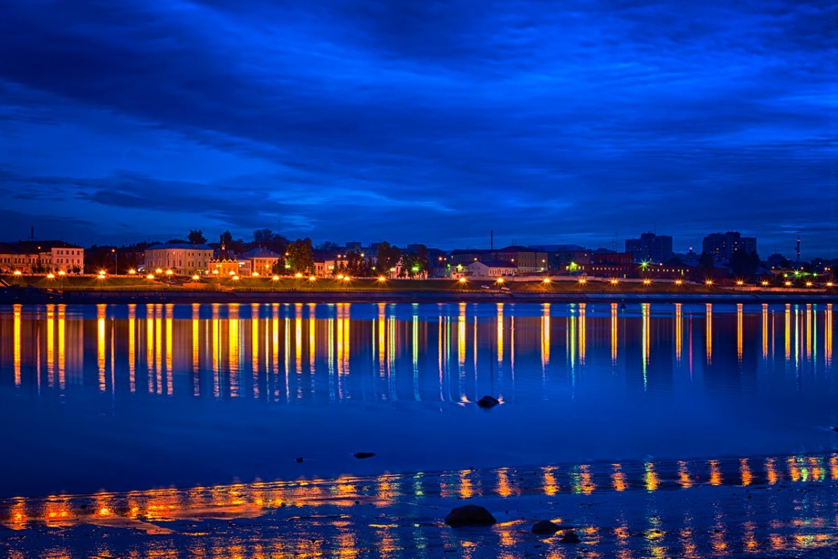 Рыбинск ночью Волга