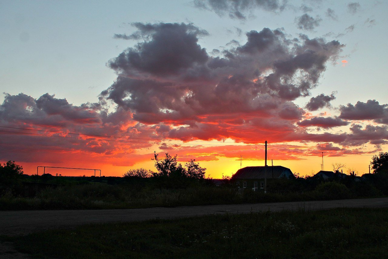 Красивый закат в деревне