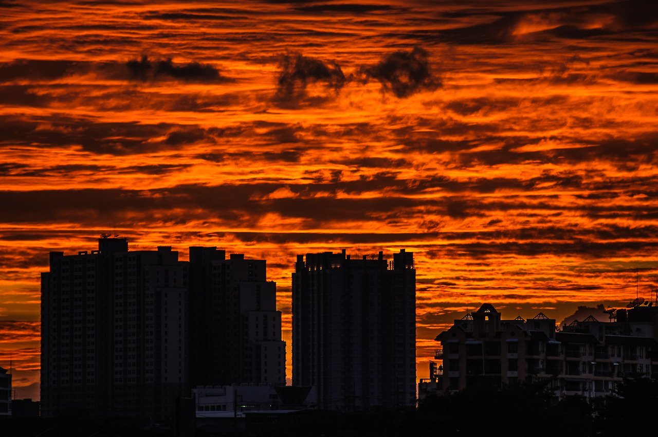 Многоэтажки на фоне заката