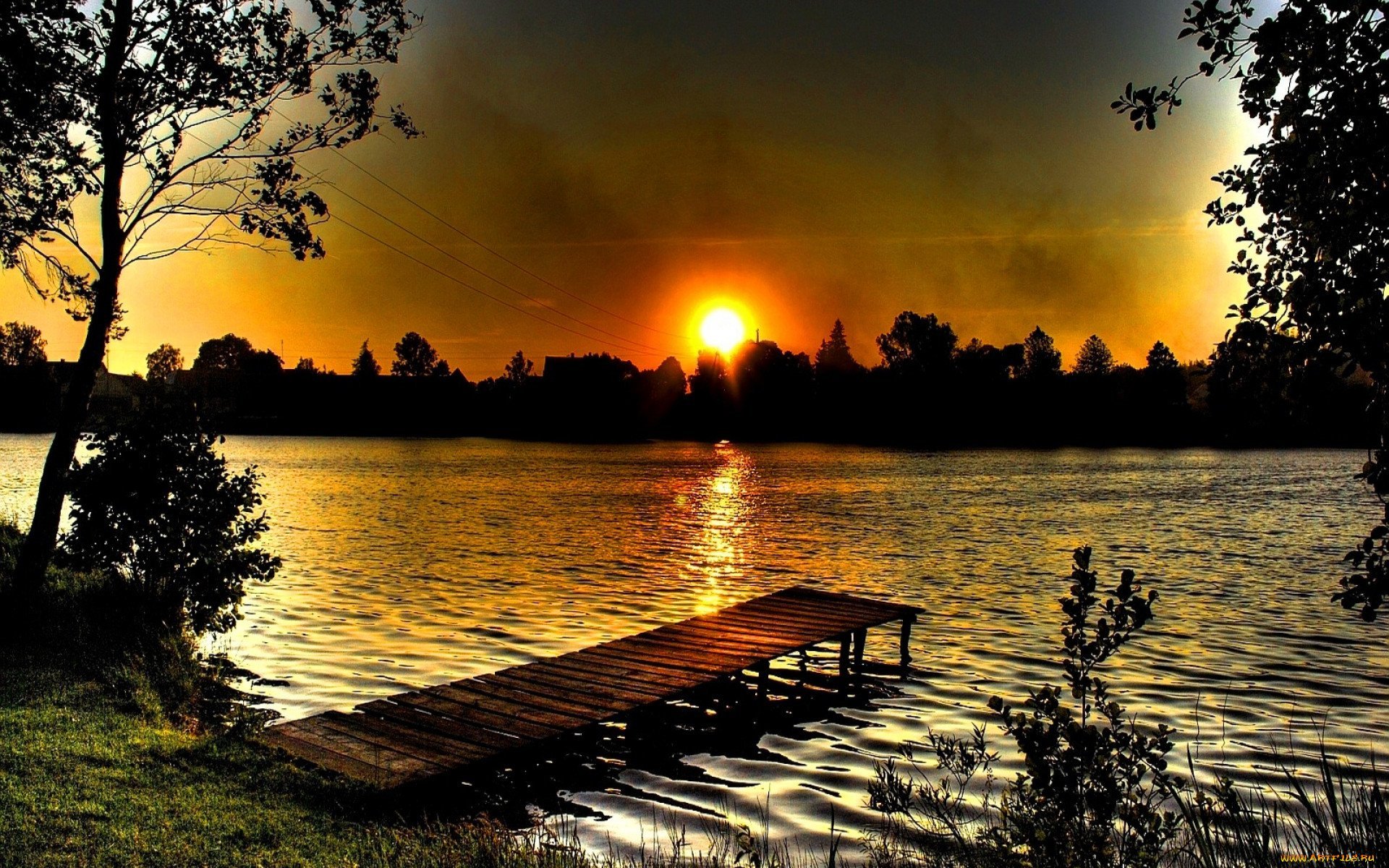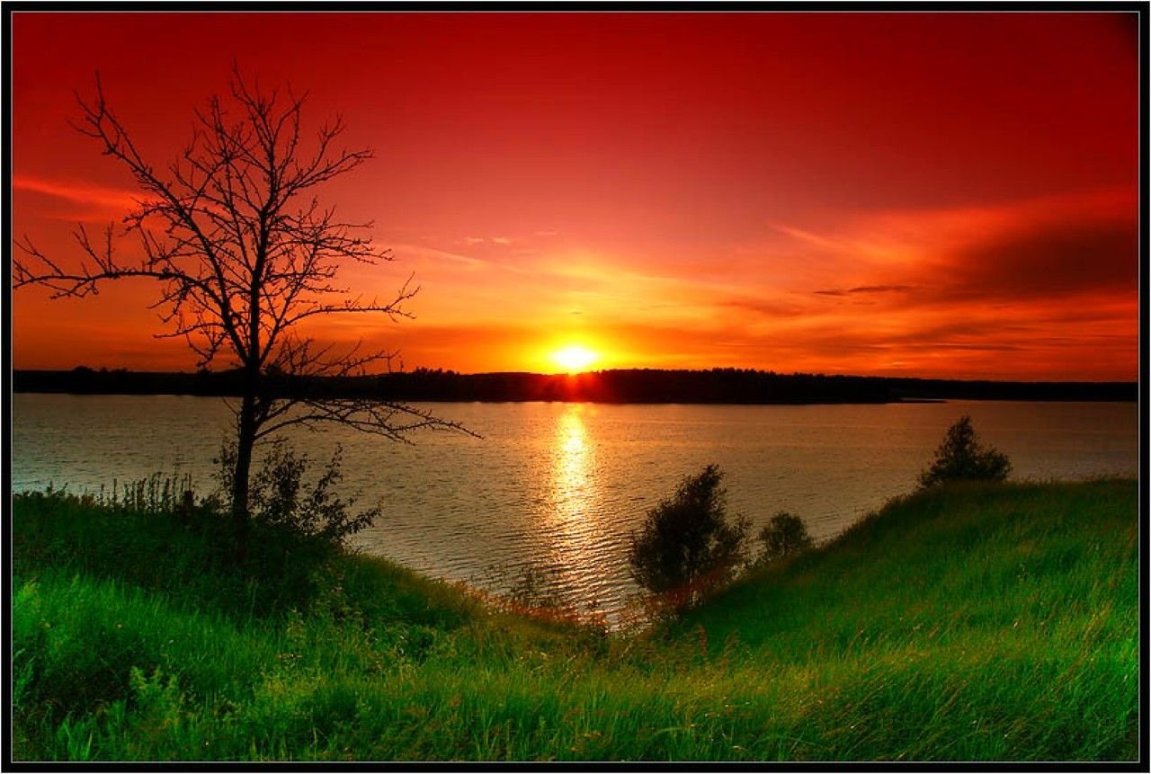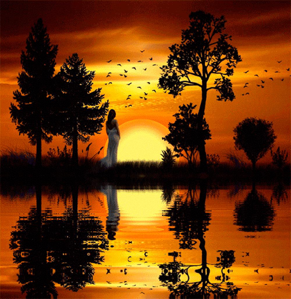 Закат на озере мультипликация