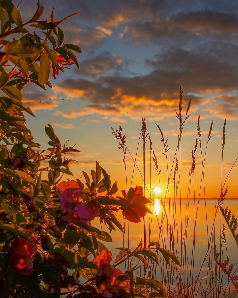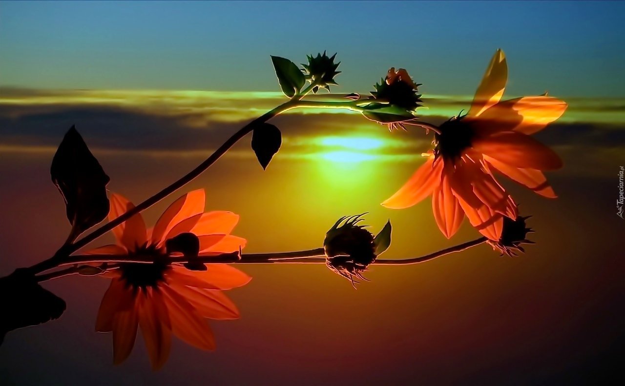 Цветы на фоне заката