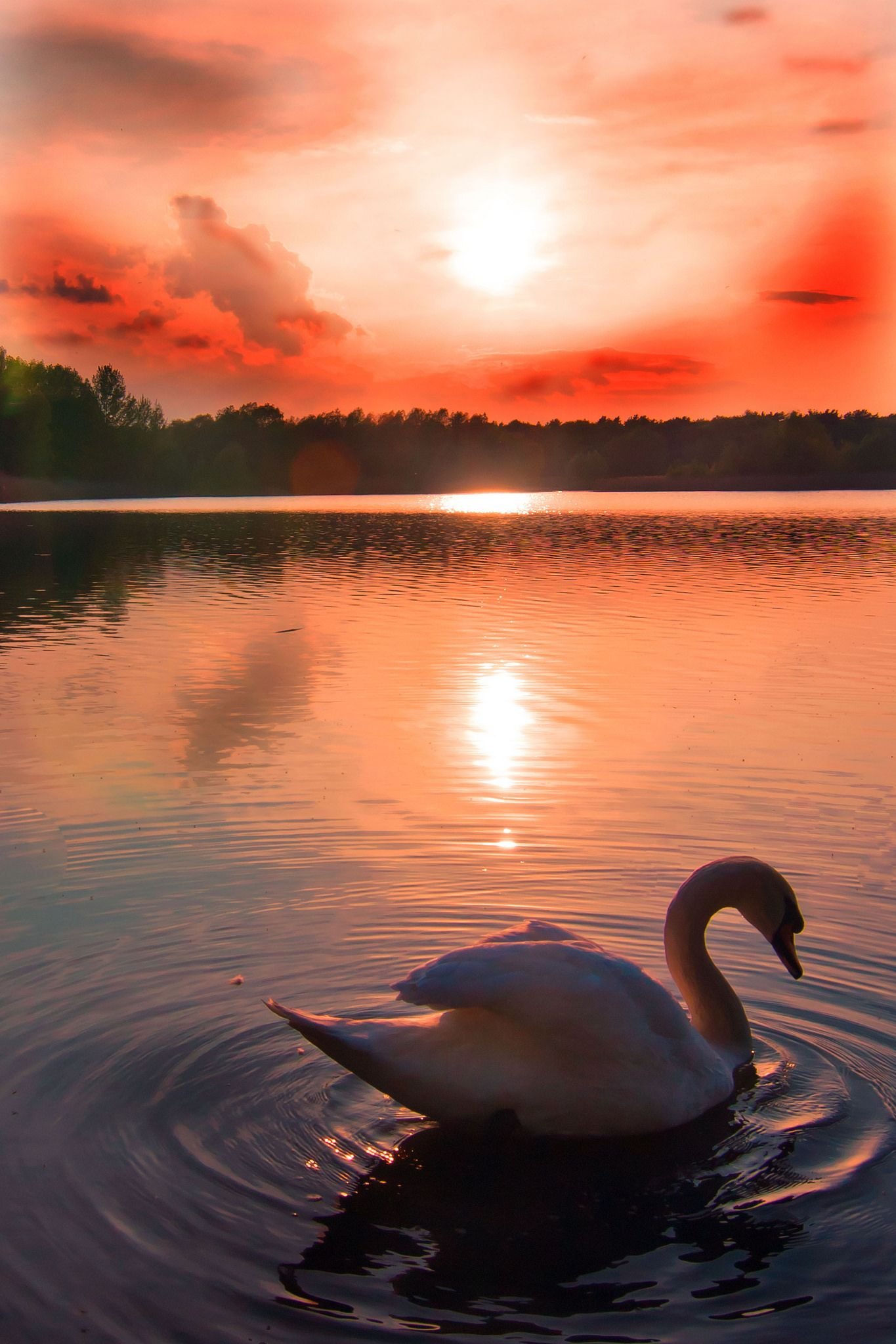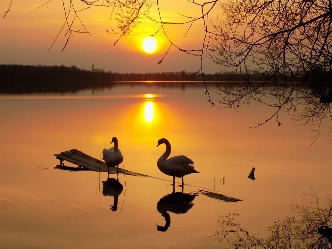 Лебеди на закате