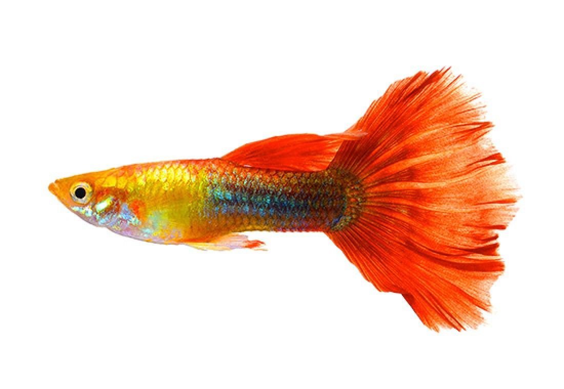 Аквариумные рыбки гуппи на белом фоне