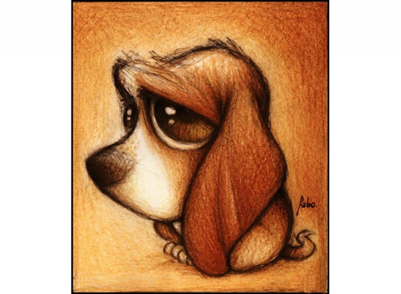 Грустная собака рисунок