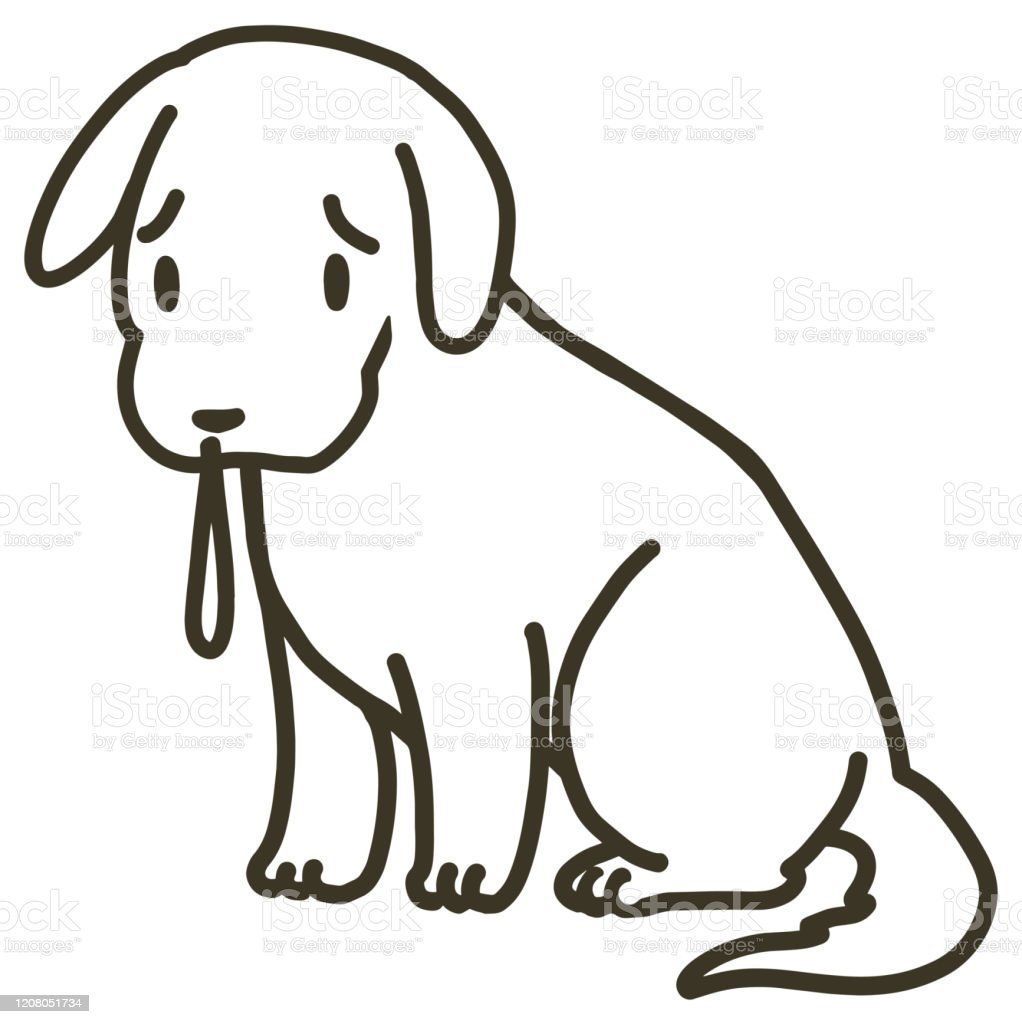 Грустный щенок сидит рисунок