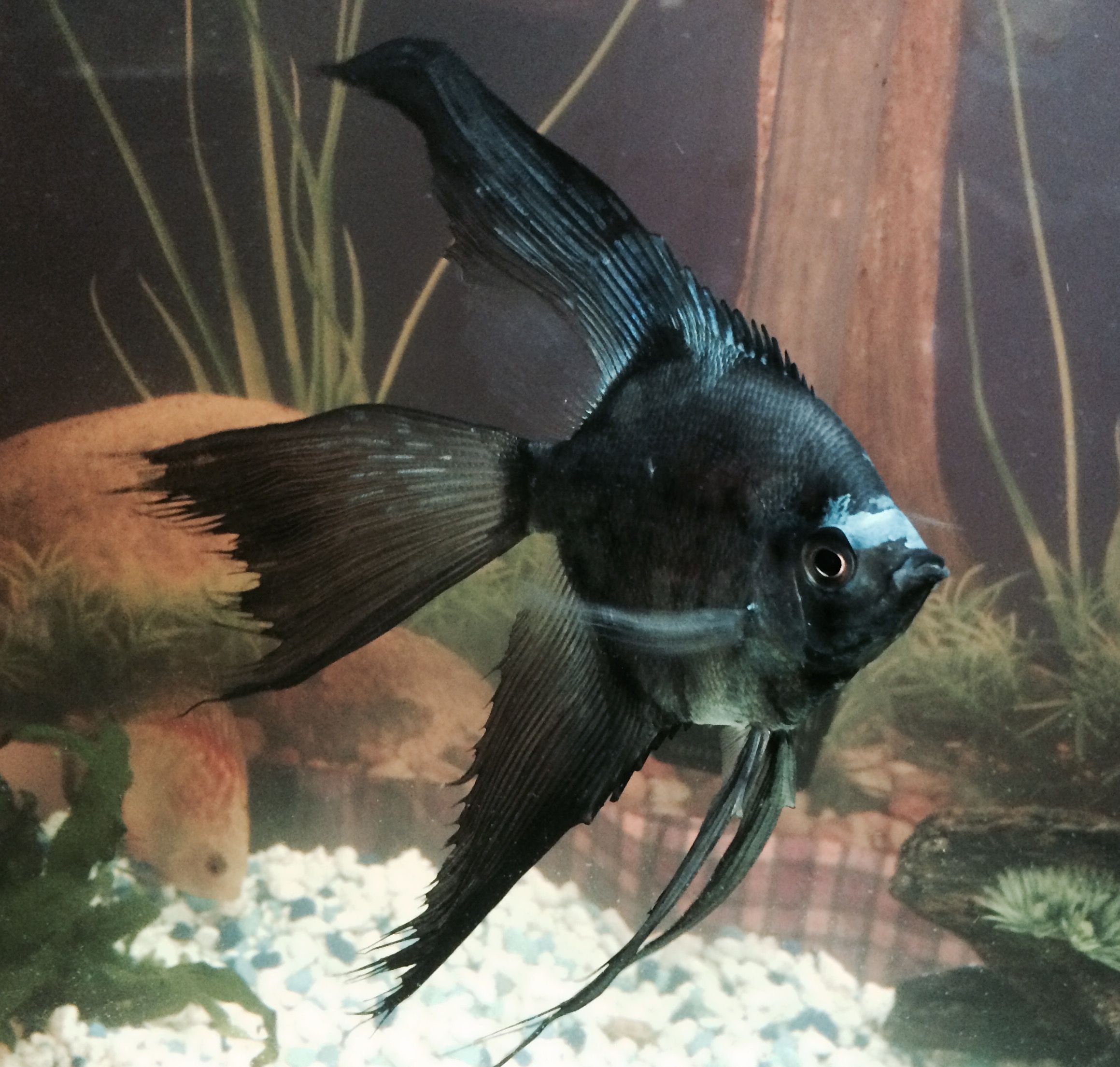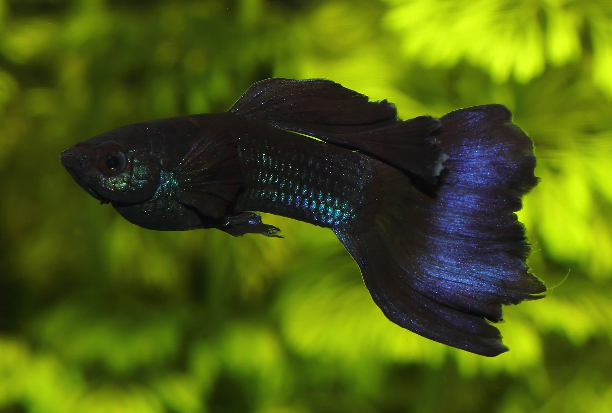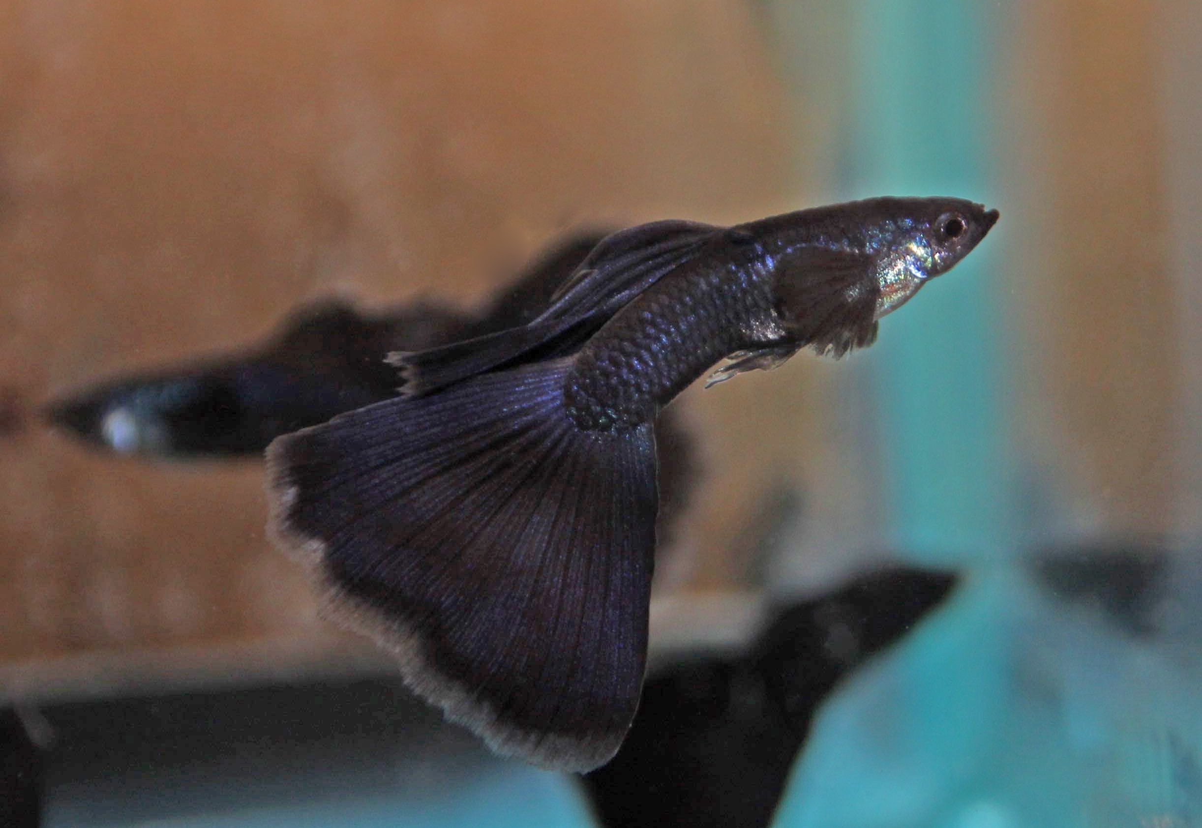 Аквариумная рыбка черного цвета хвост арфой