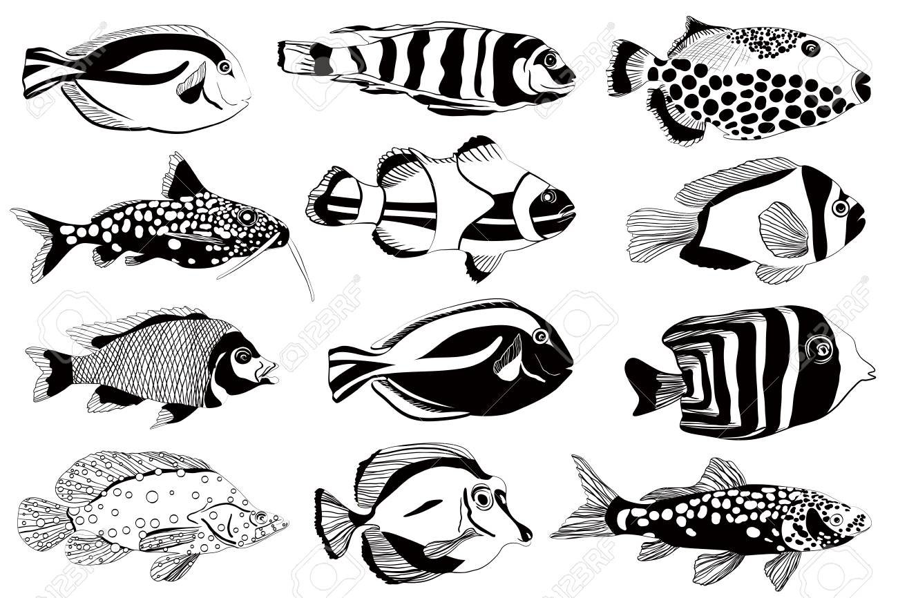 Рыбы Графика черно-белая