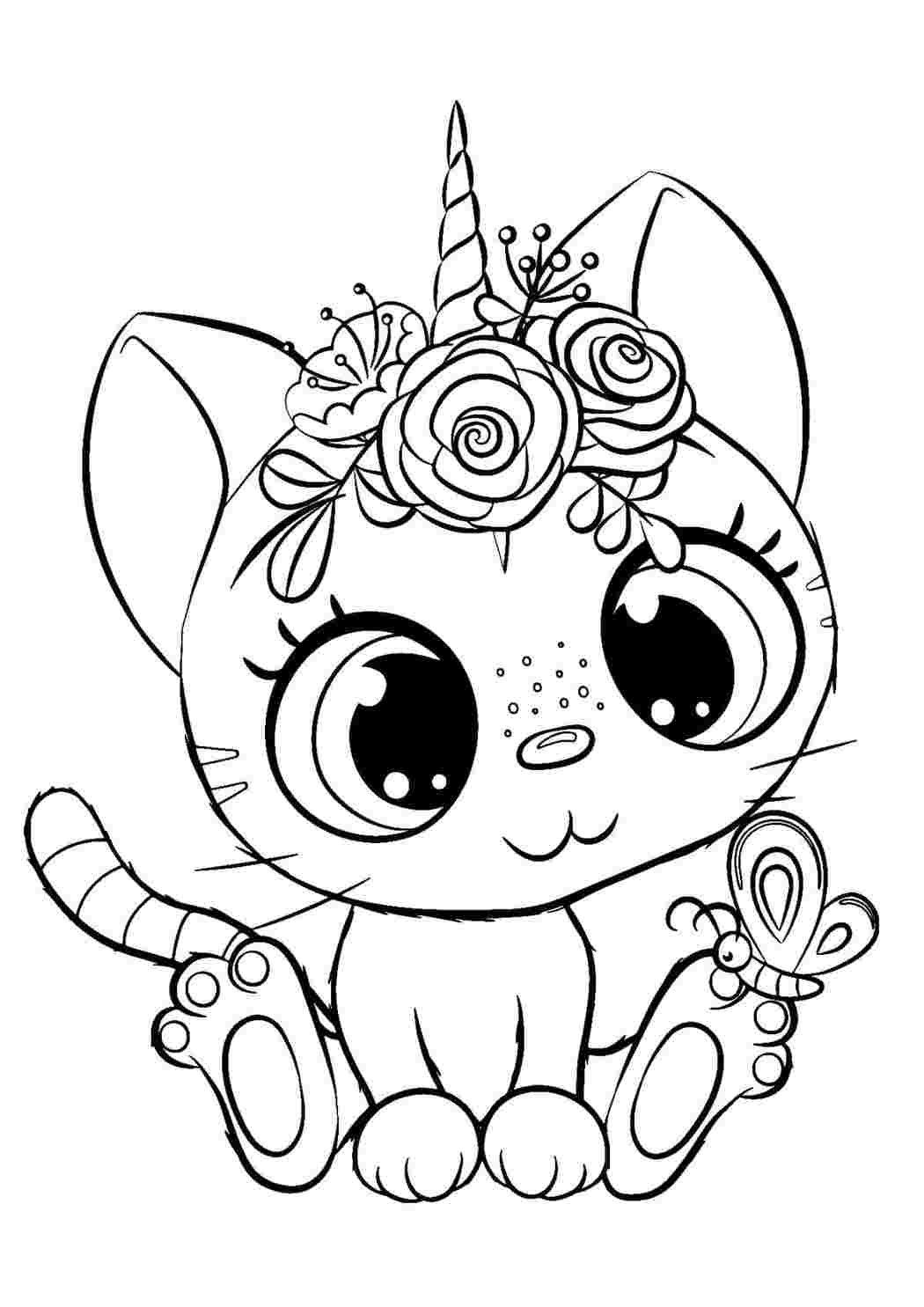 Кошка Единорожка раскраска