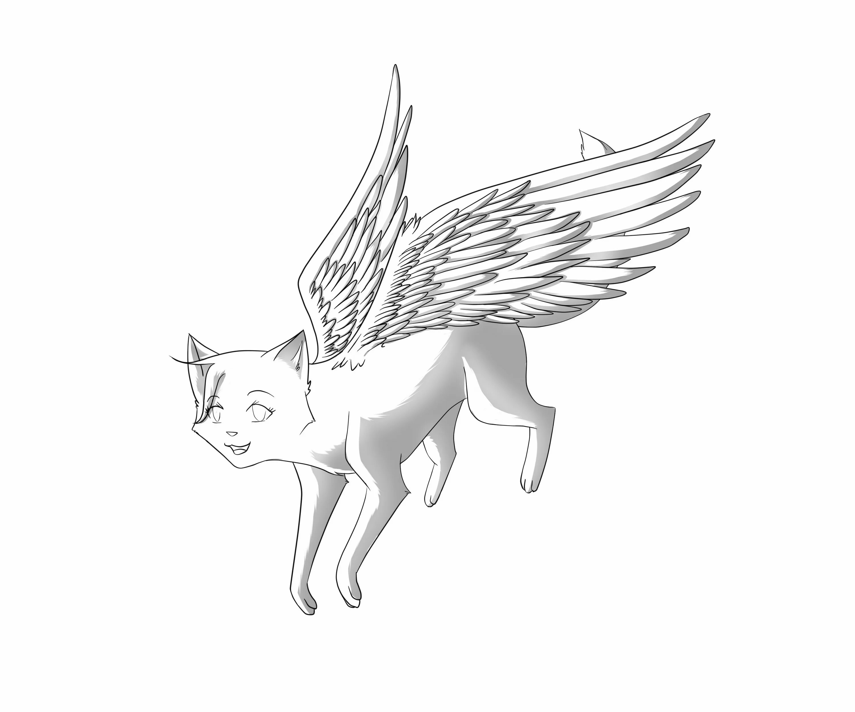 Кошка с крыльями раскраска
