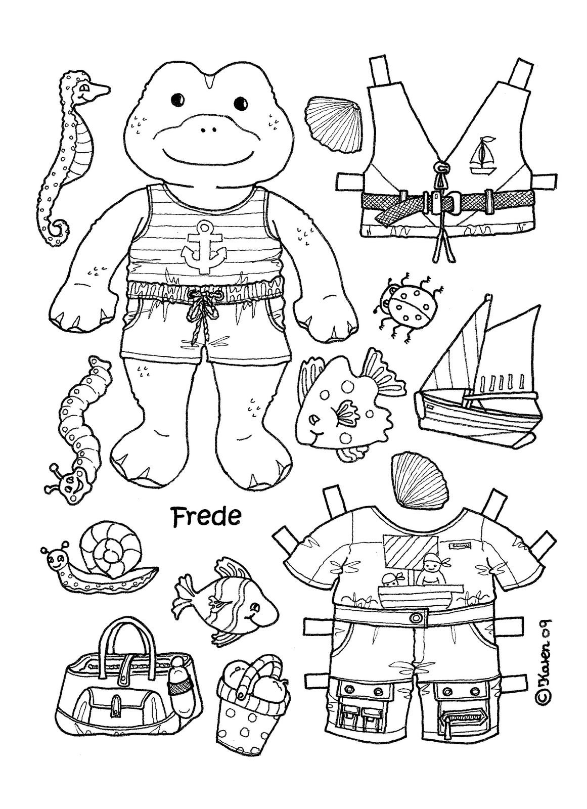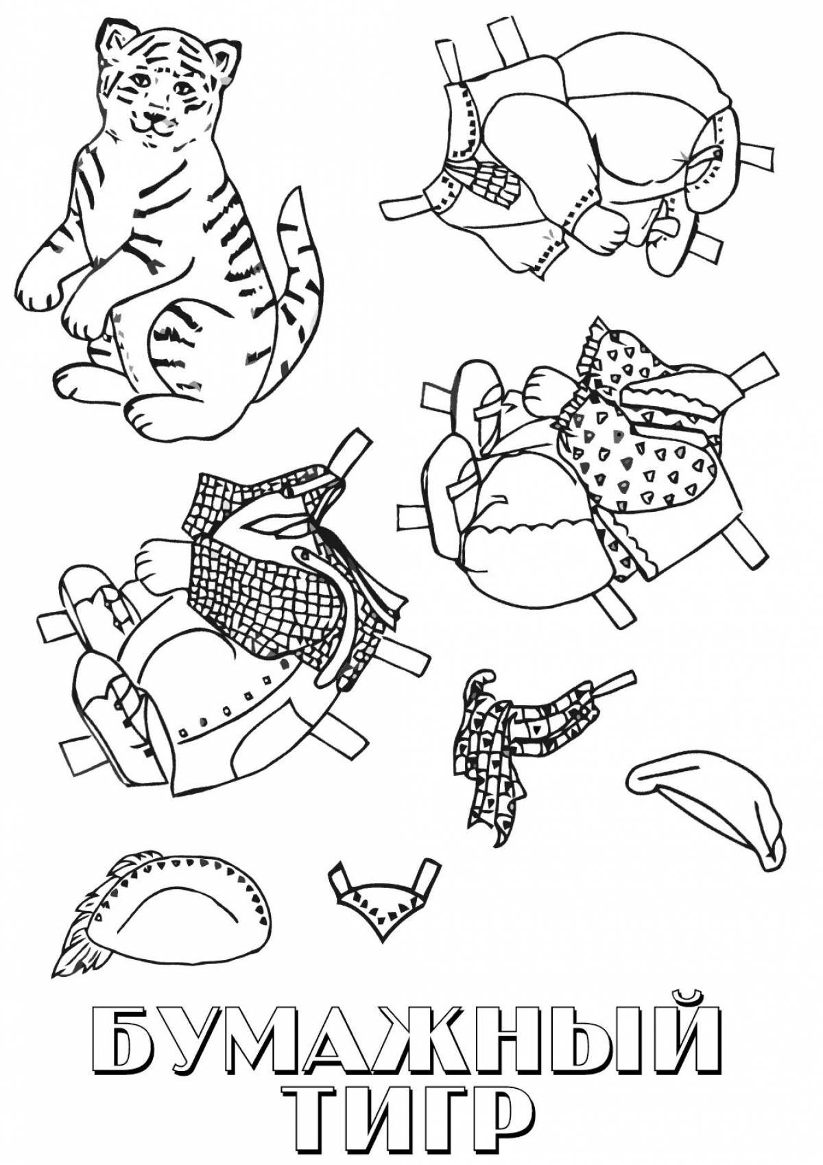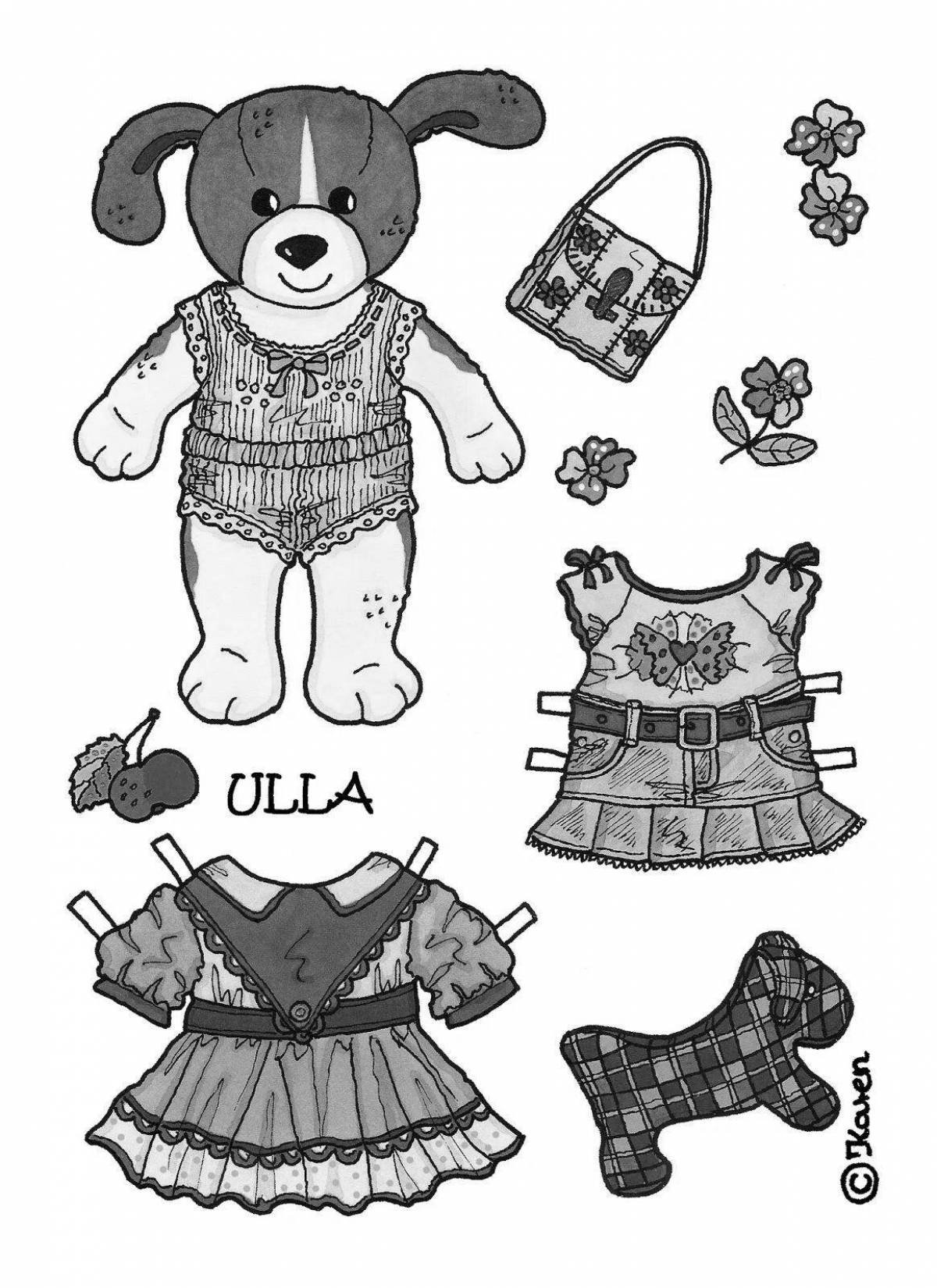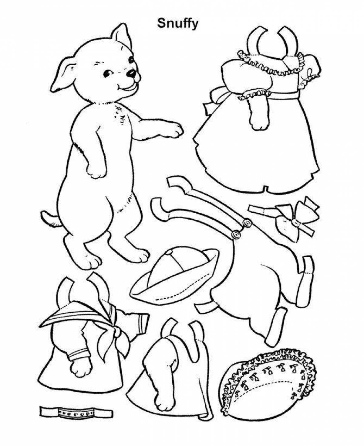 Бумажные животные с одеждой раскраски