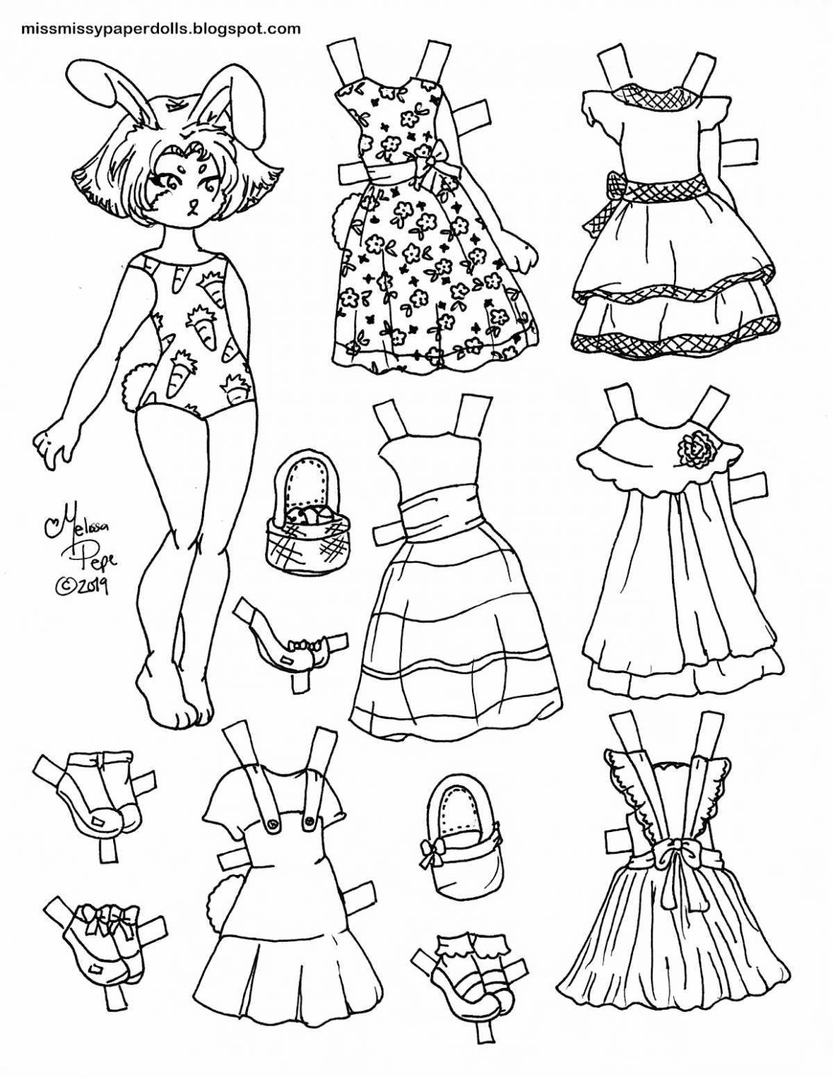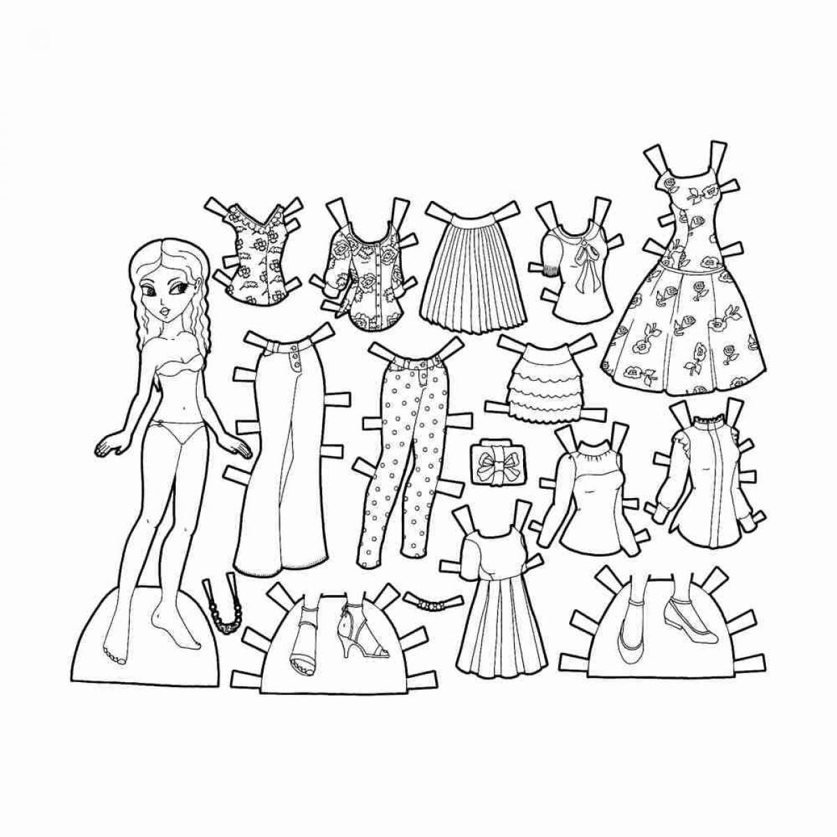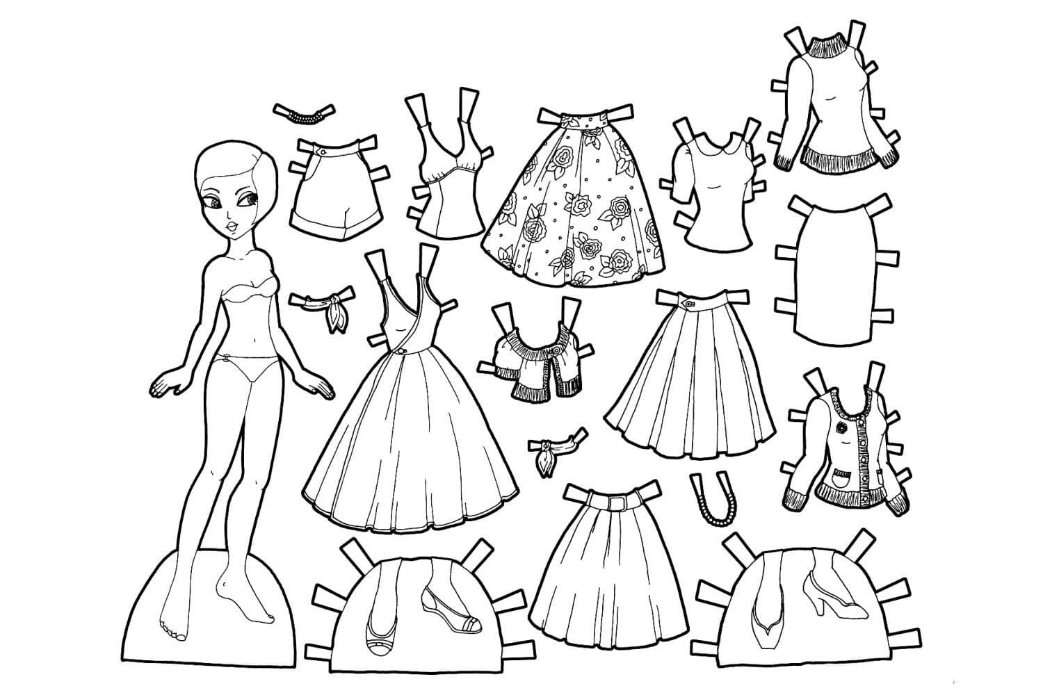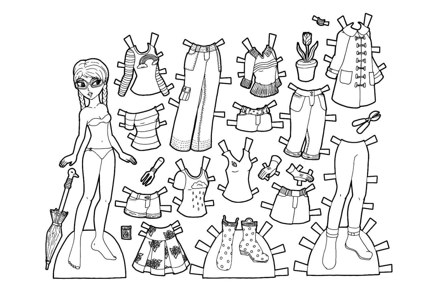Бумажная кукла с одеждой раскраска