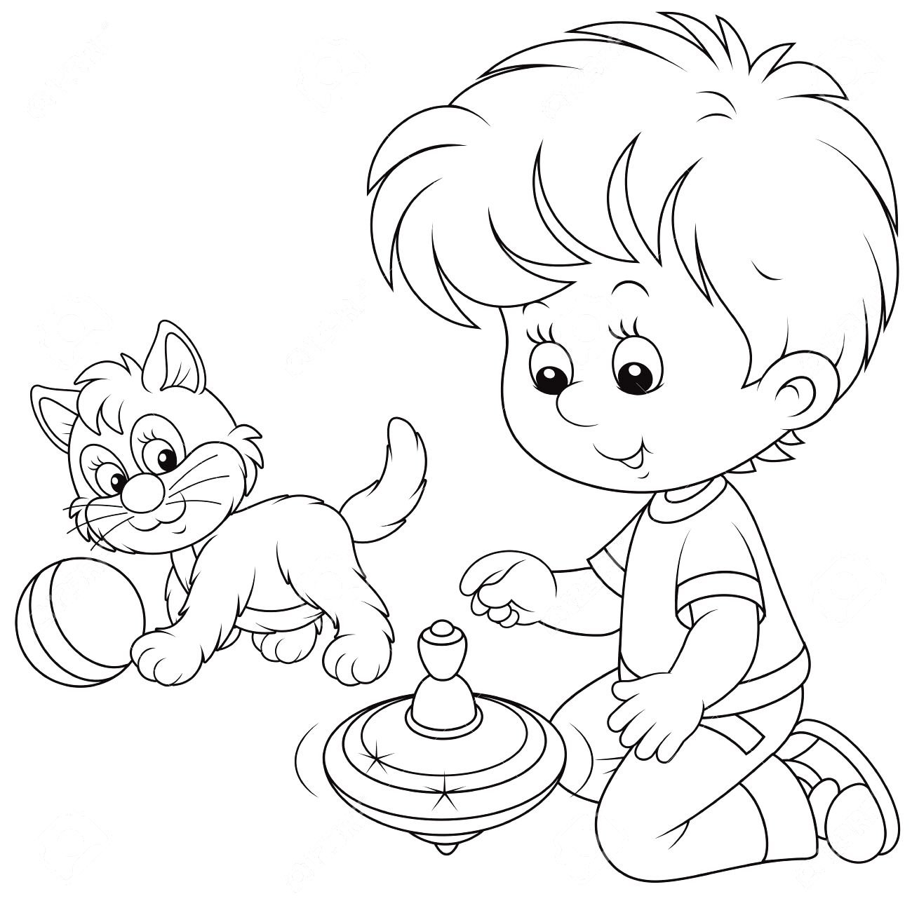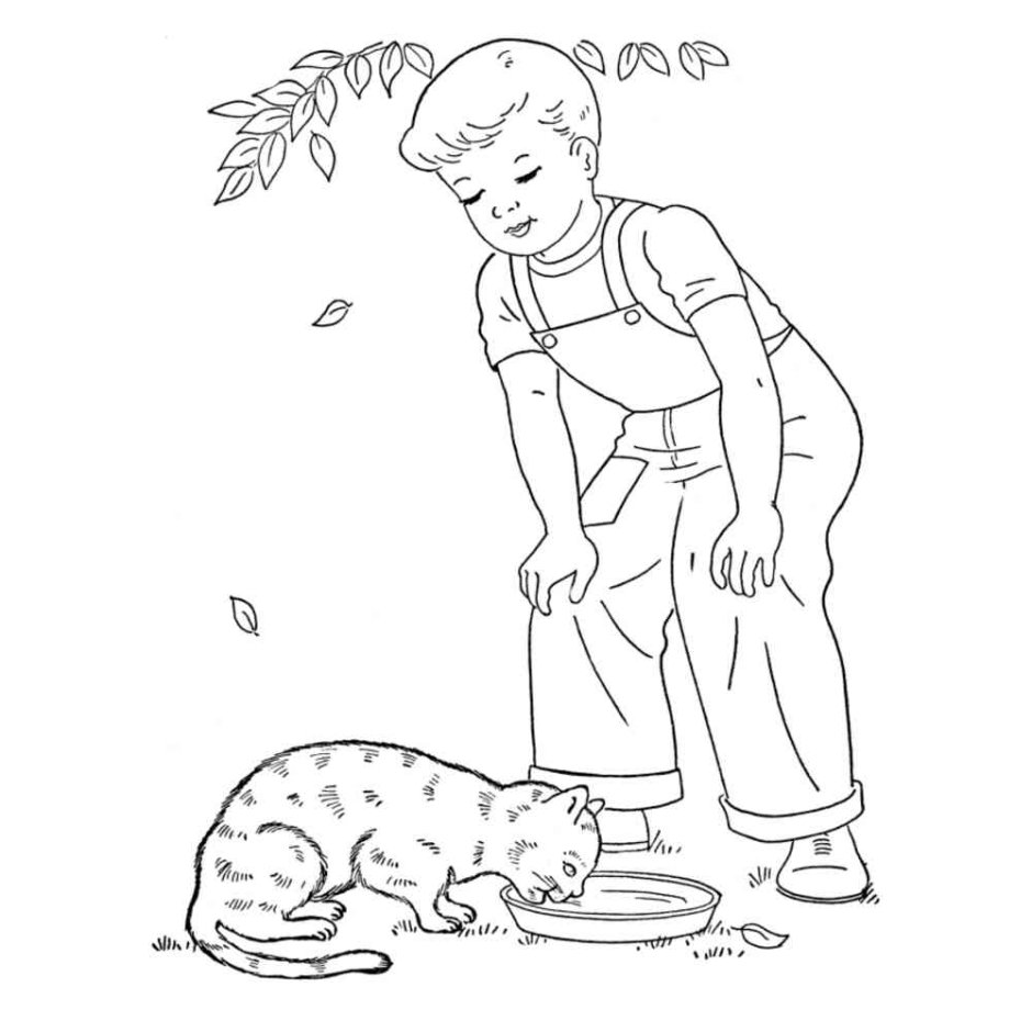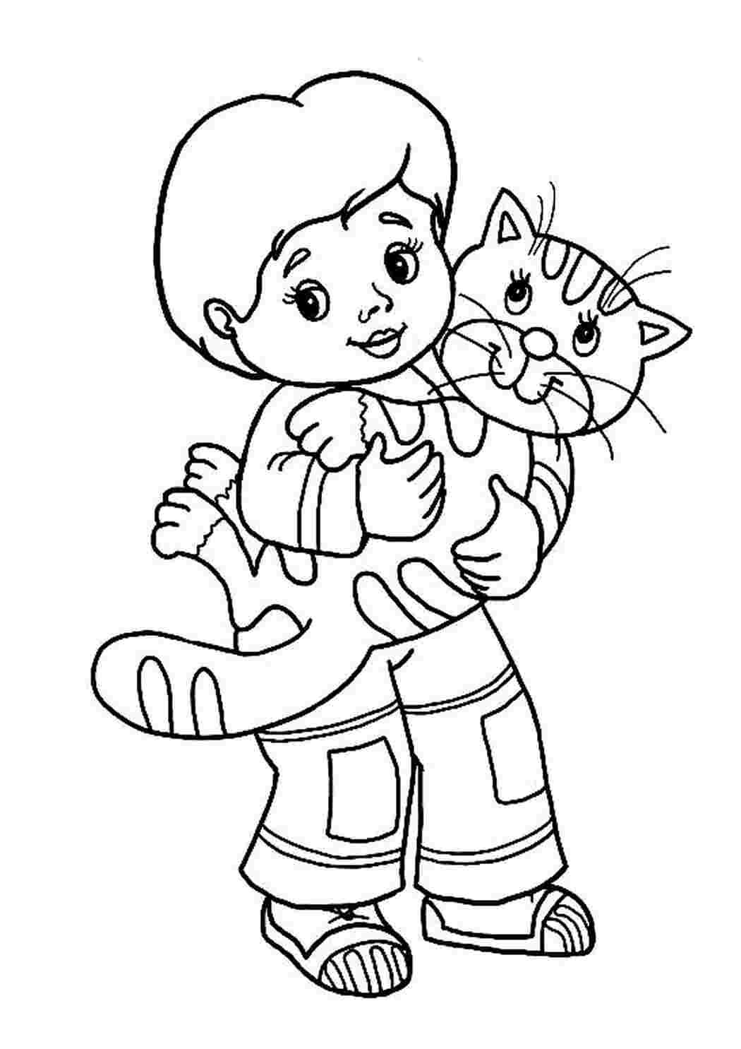 Мальчик и кот раскраска для детей