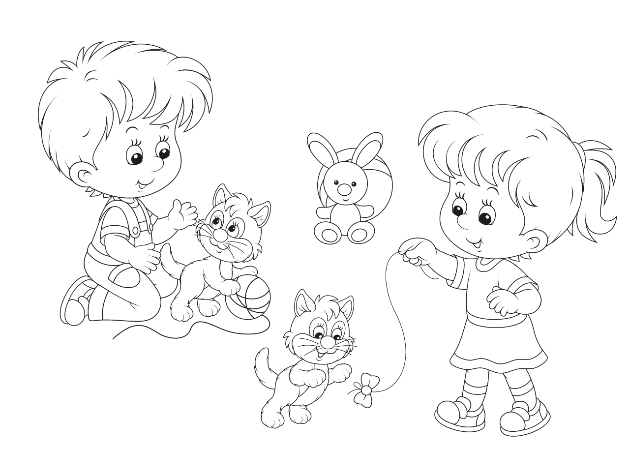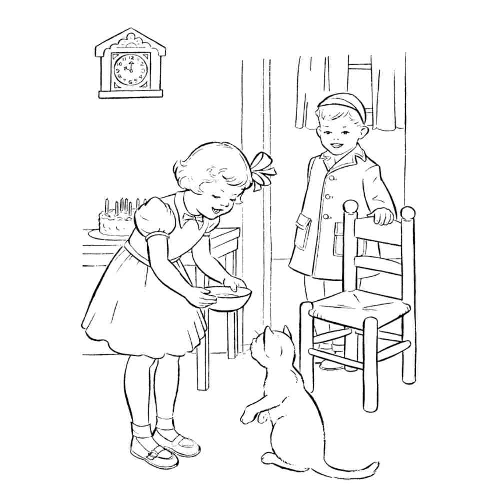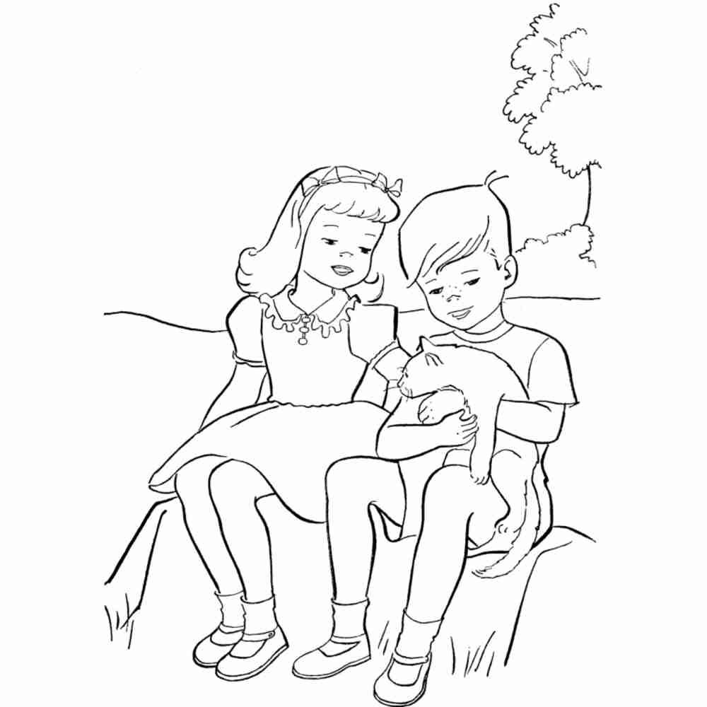 Раскраски для детей дети и кот