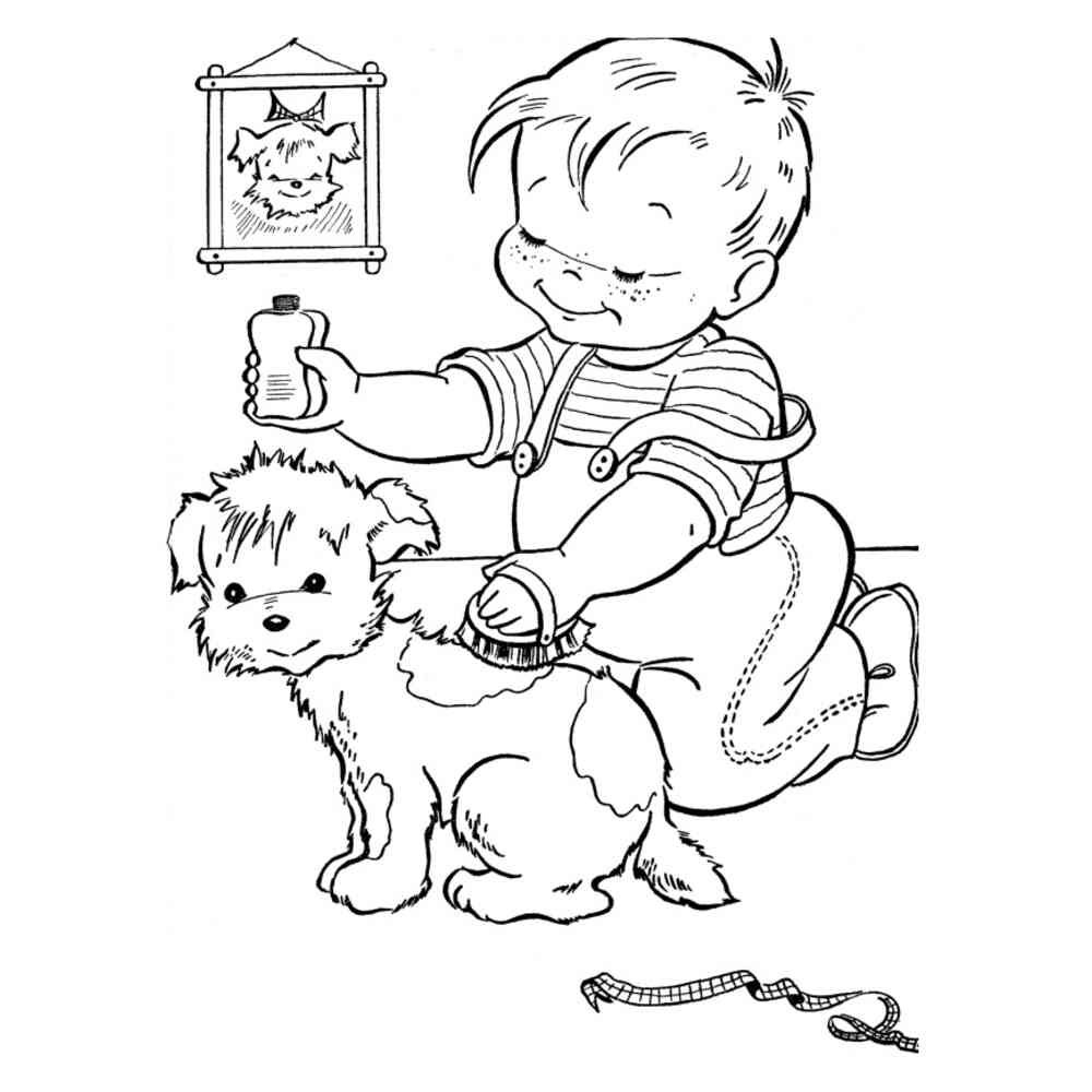 Раскраска мальчик с собакой