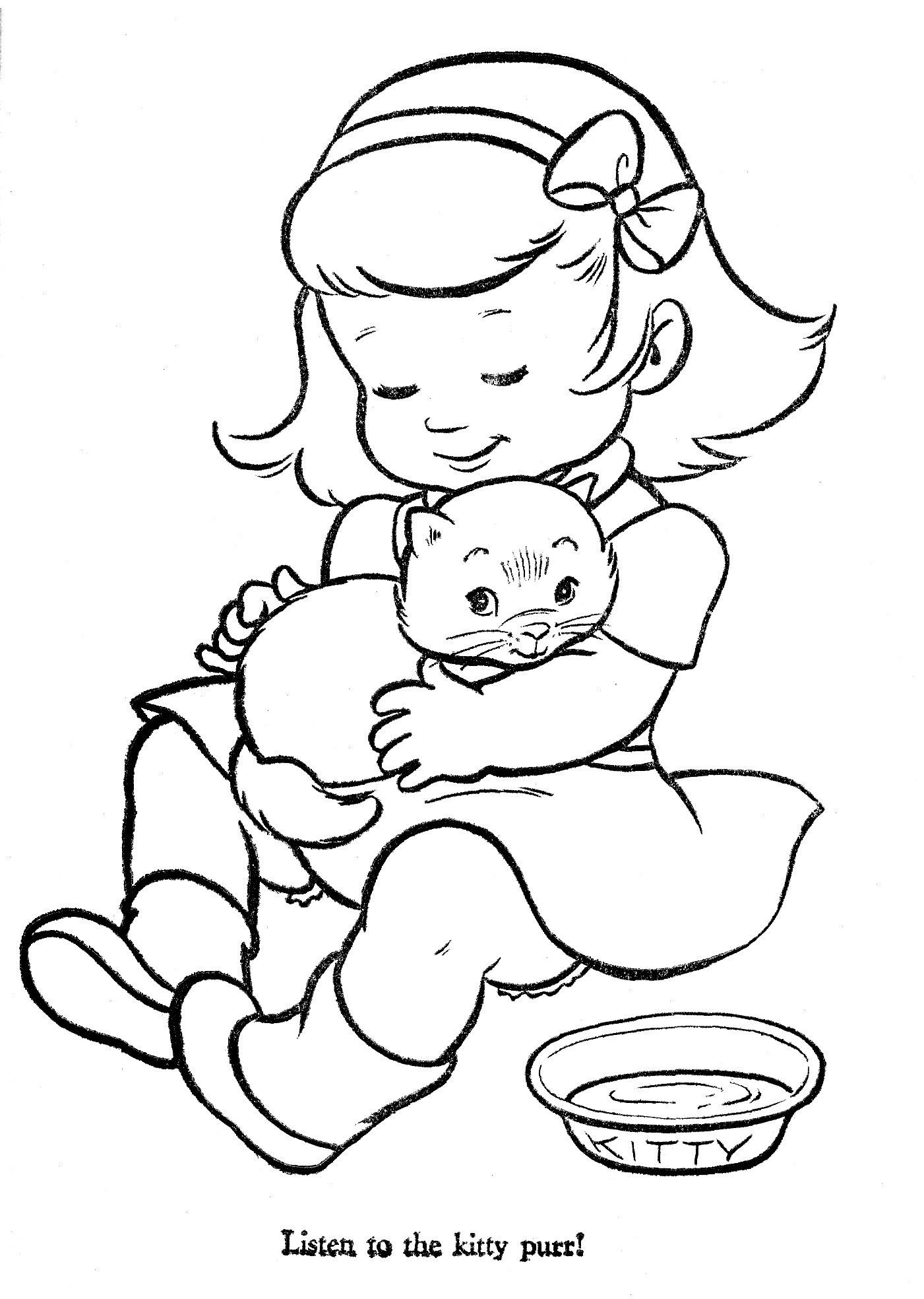 Девочка с котенком раскраска для детей