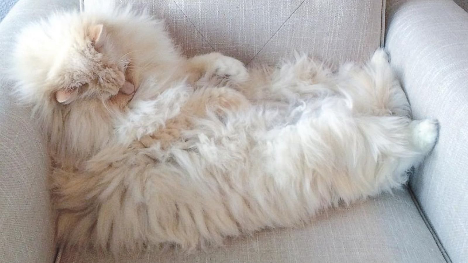 Пушистая кошка на спине