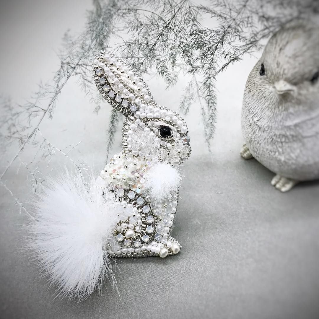 Брошь из бисера зайчик