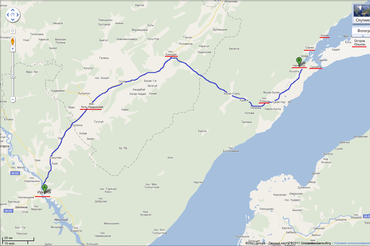 Деревня Курма на карте Байкала