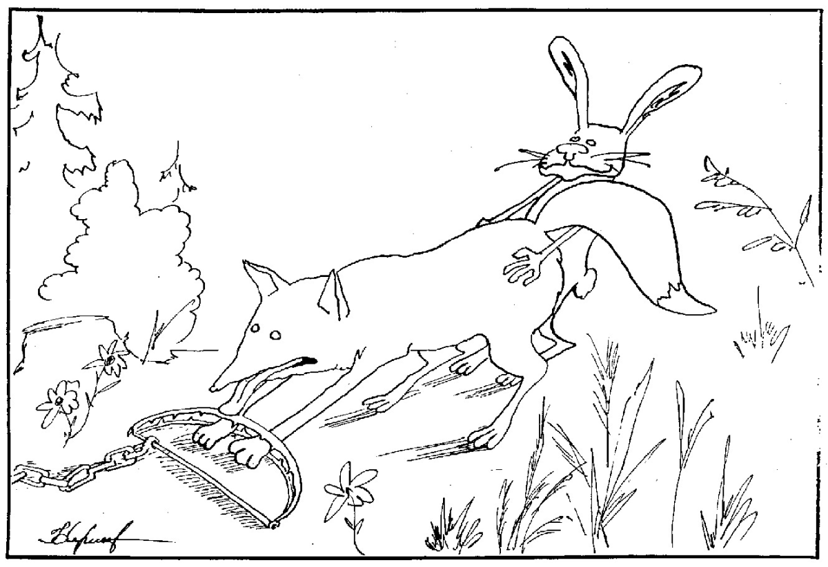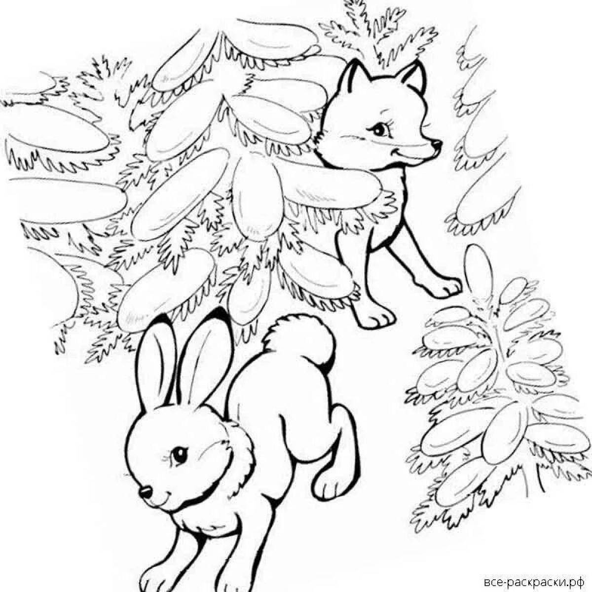 Лиса и заяц раскраска