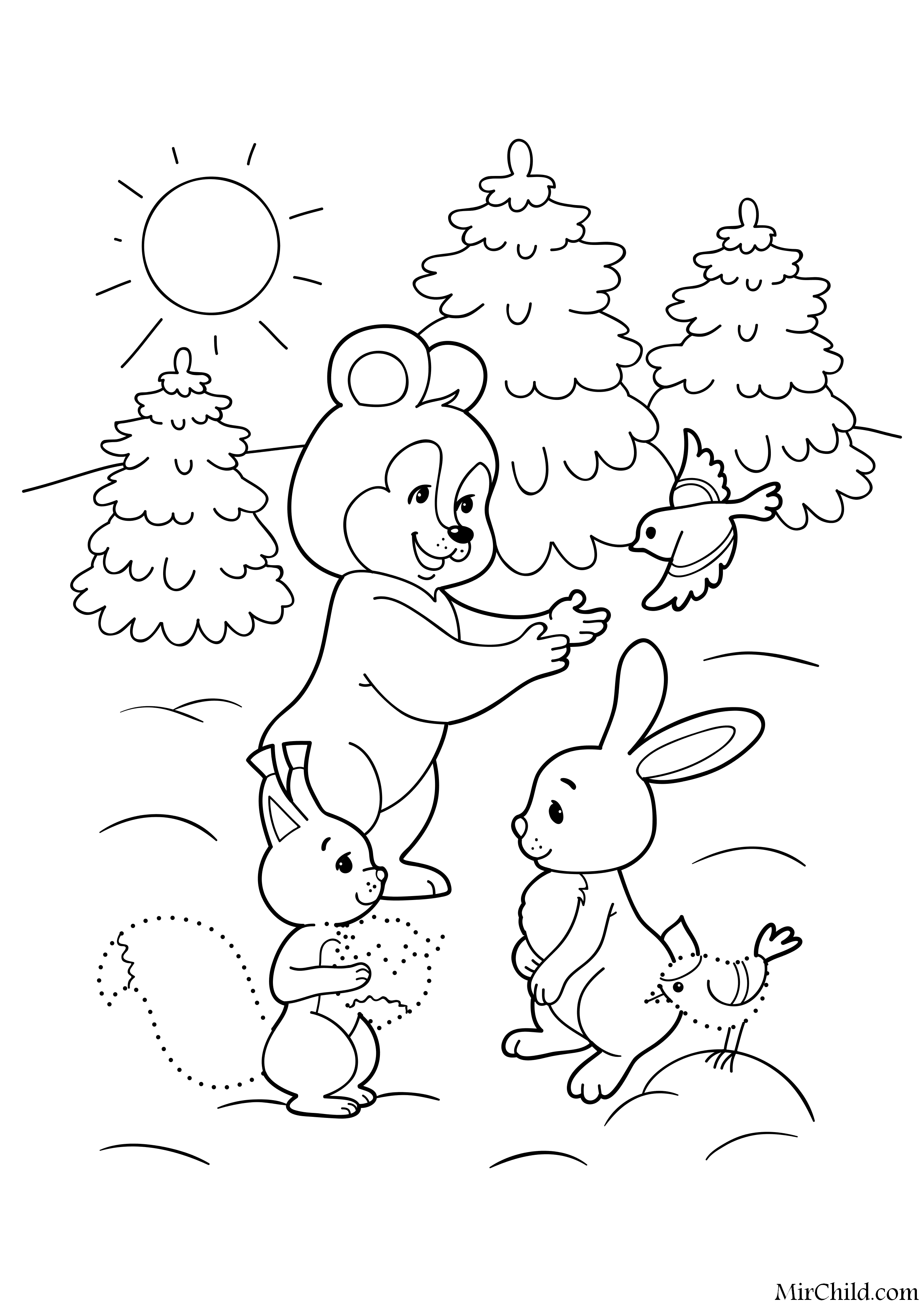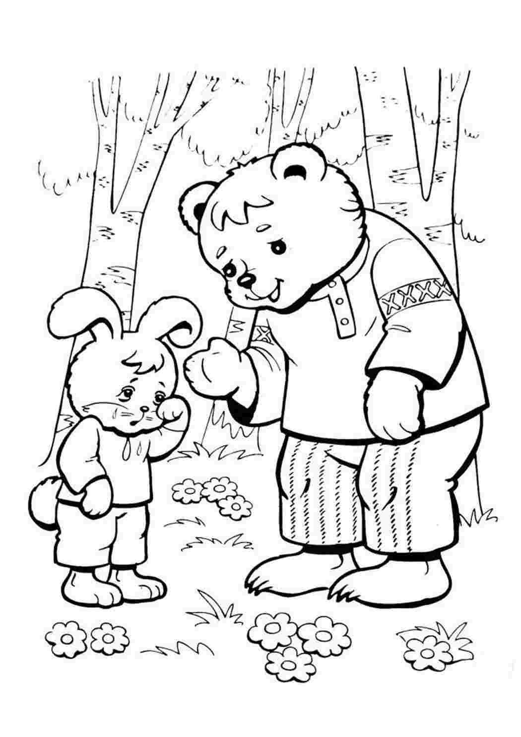Заяц и медведь раскраска