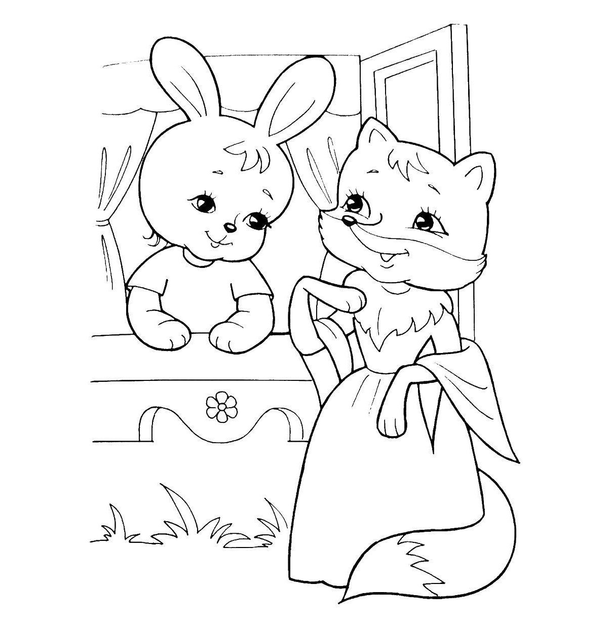 Раскраски сказка лиса и зайчик