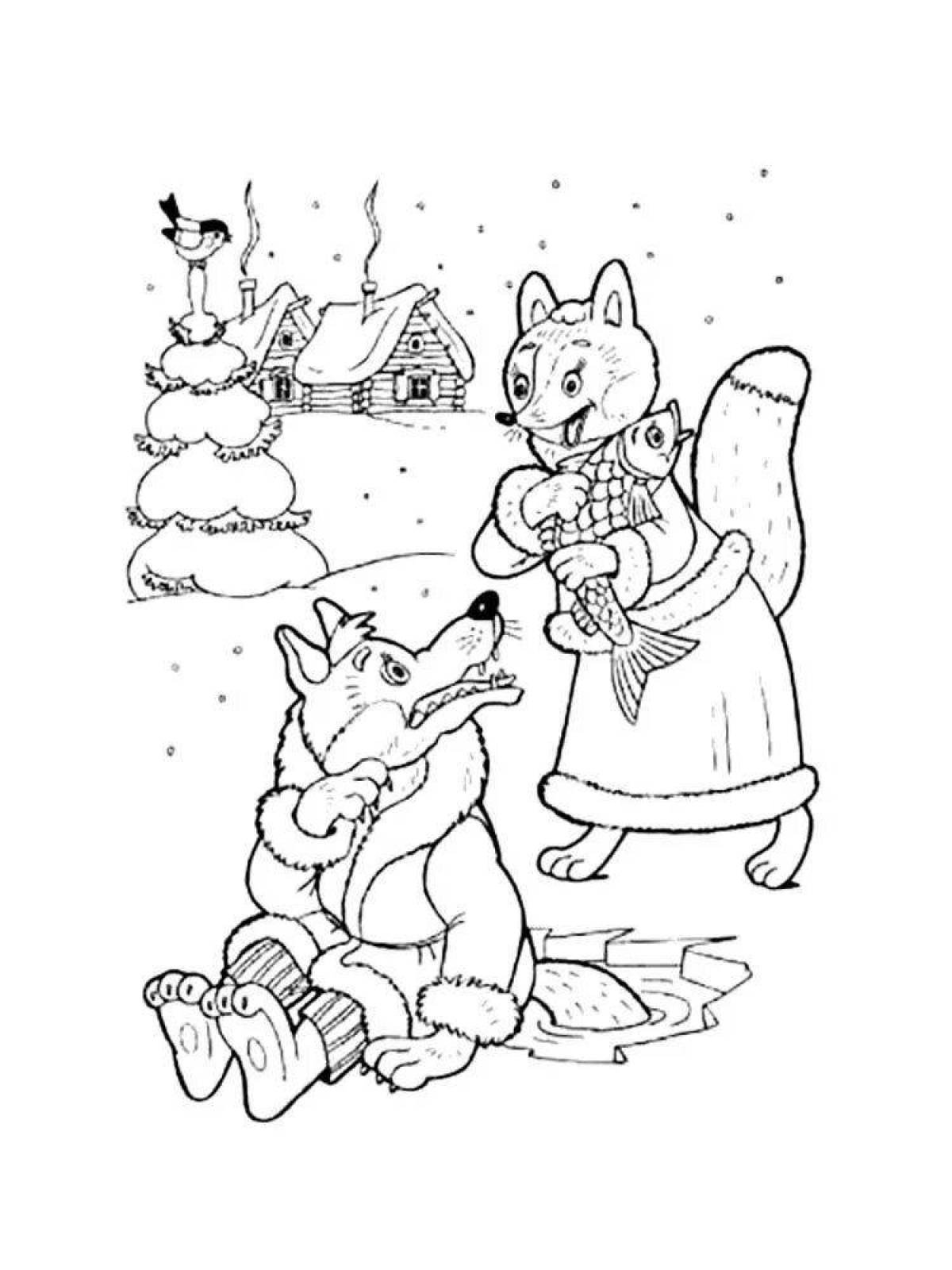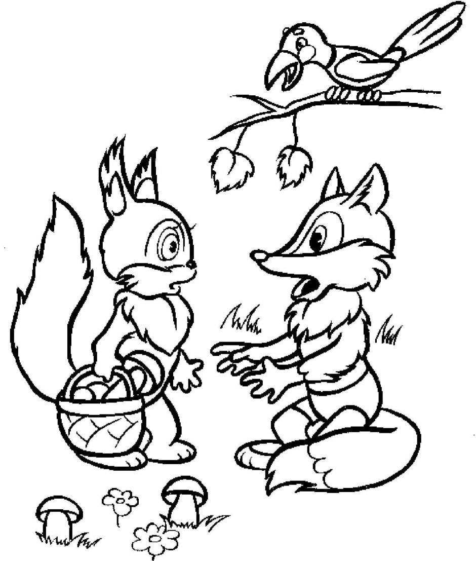 Волк и лиса сказка разукрашка
