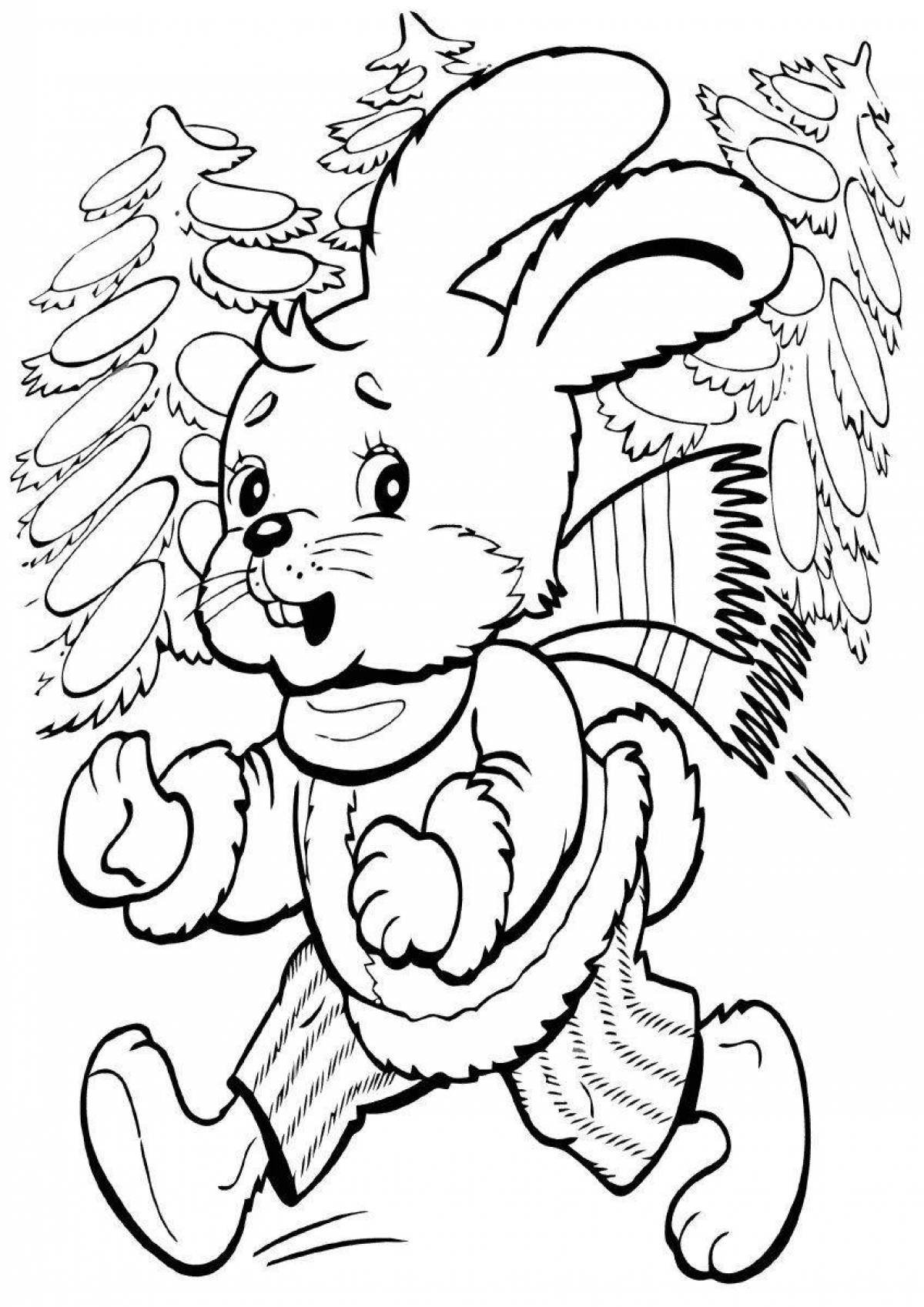 Зайчик с елкой раскраска
