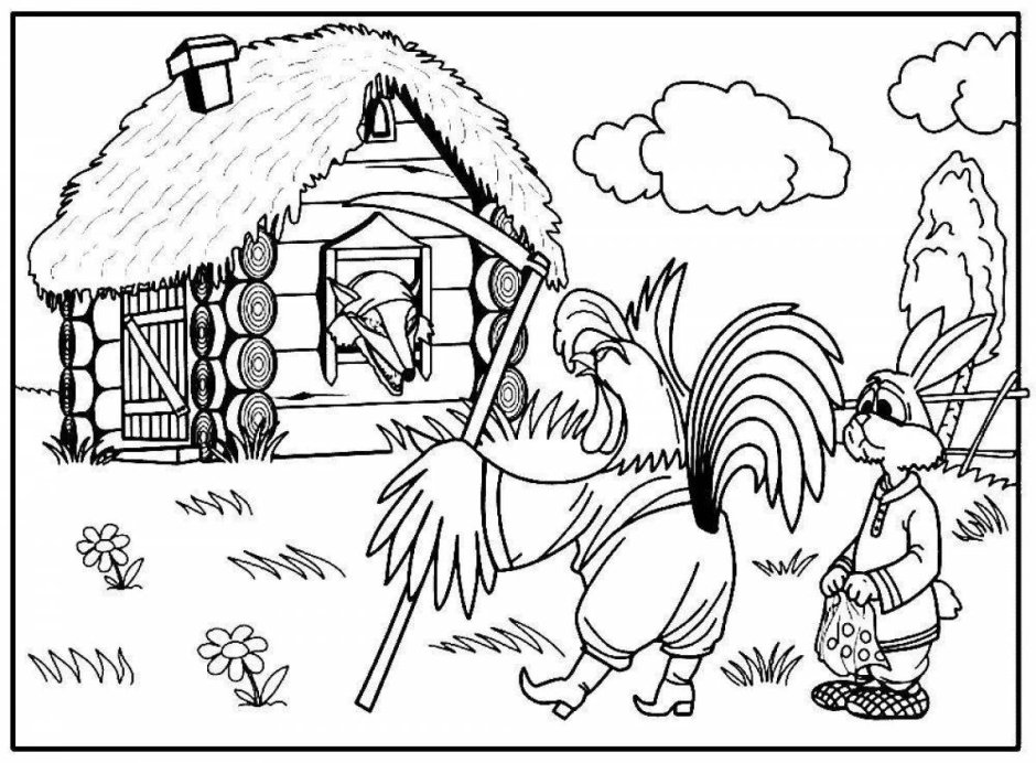 Раскраски по сказке Заюшкина избушка