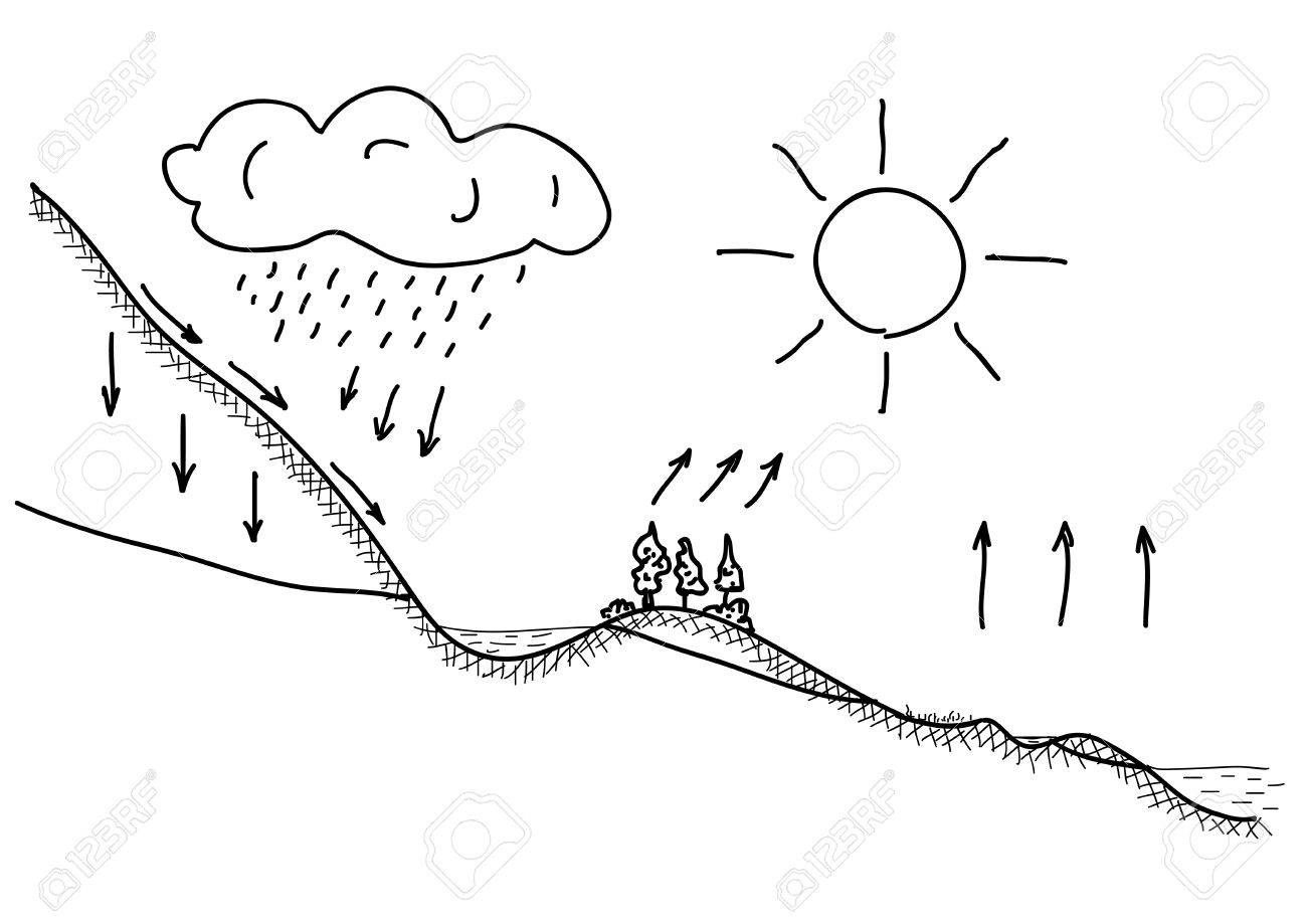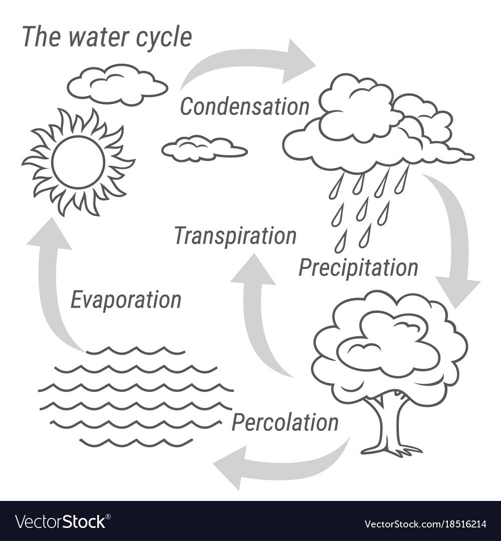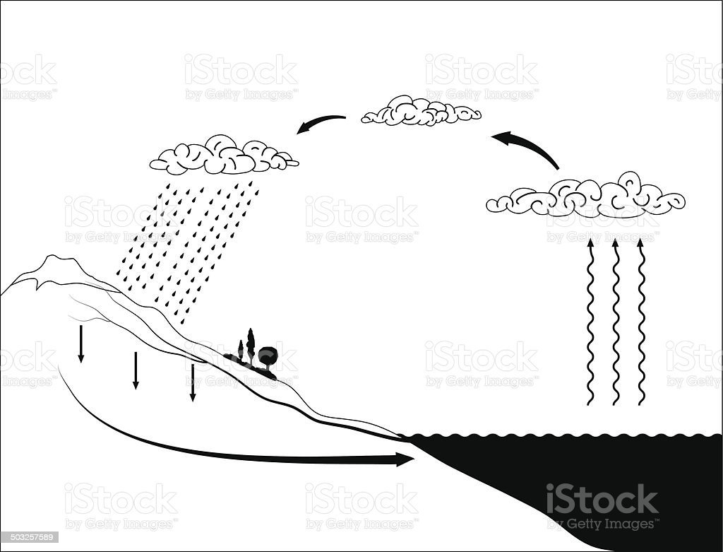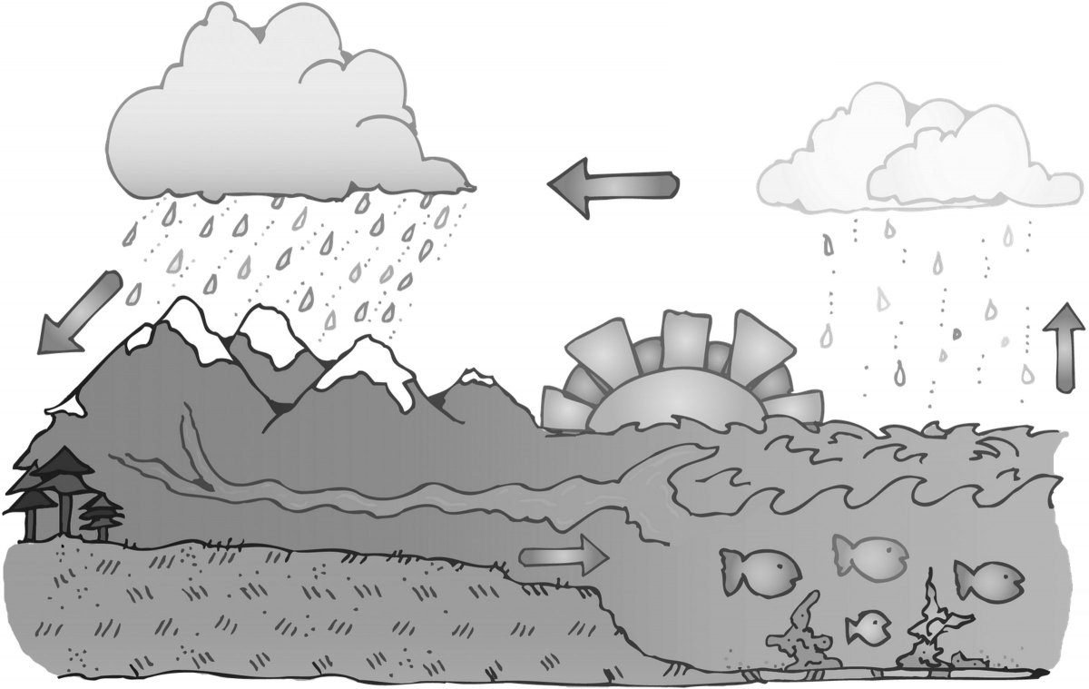 Черно белая простая схема круговорота воды в природе