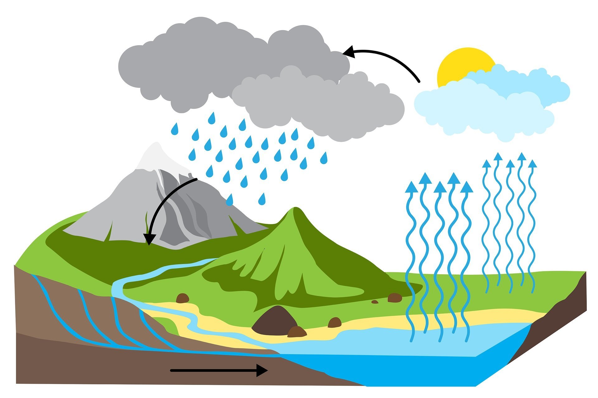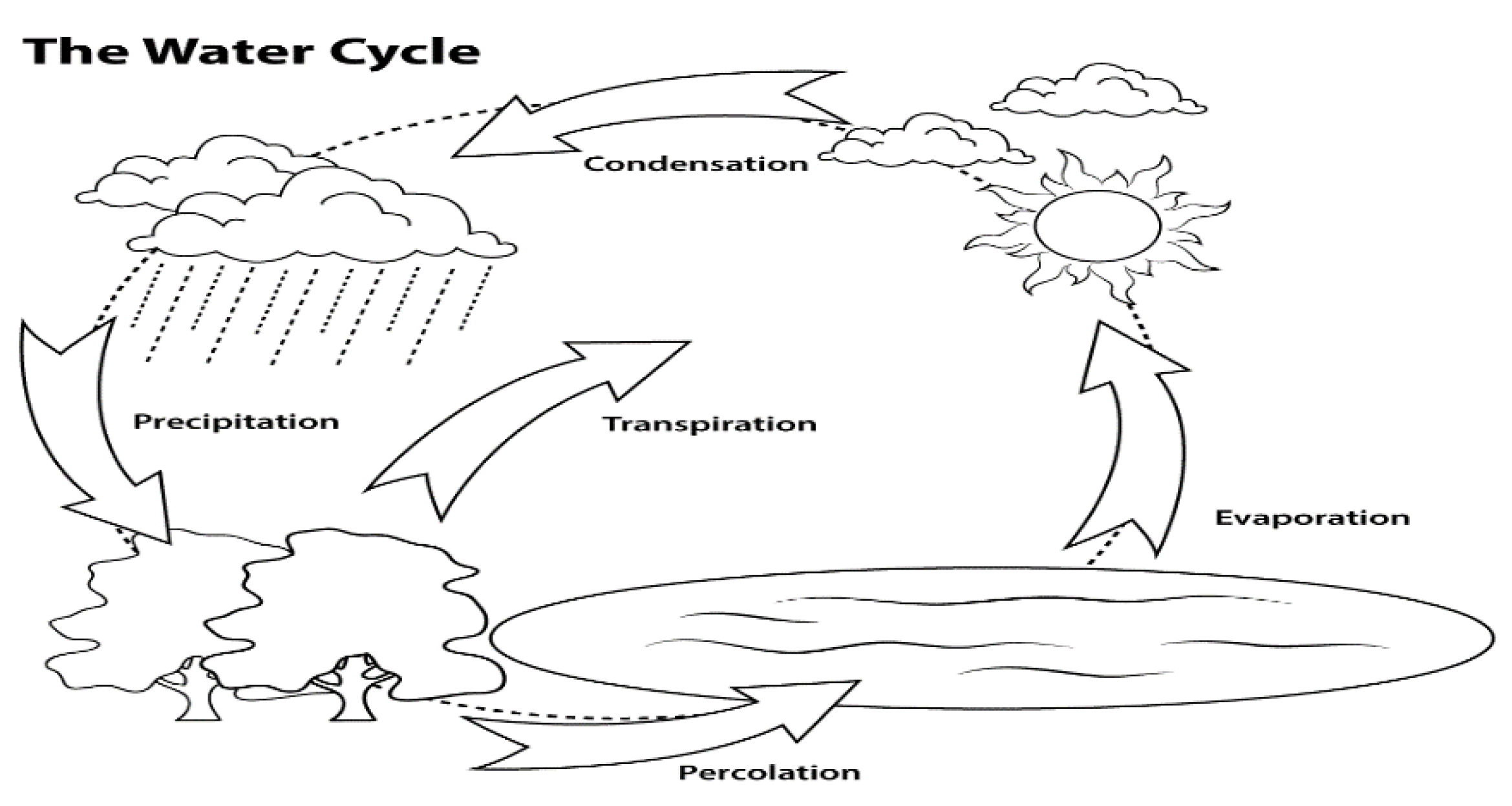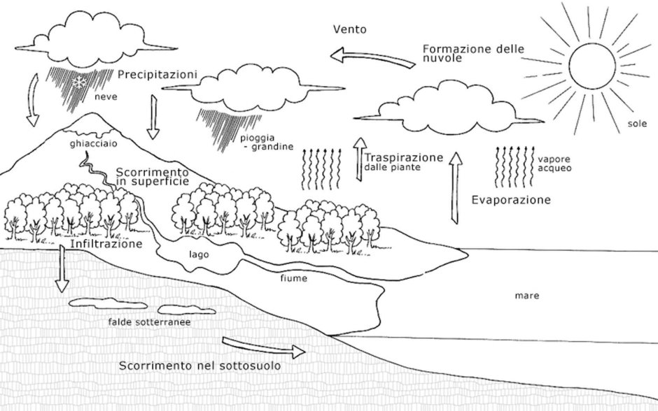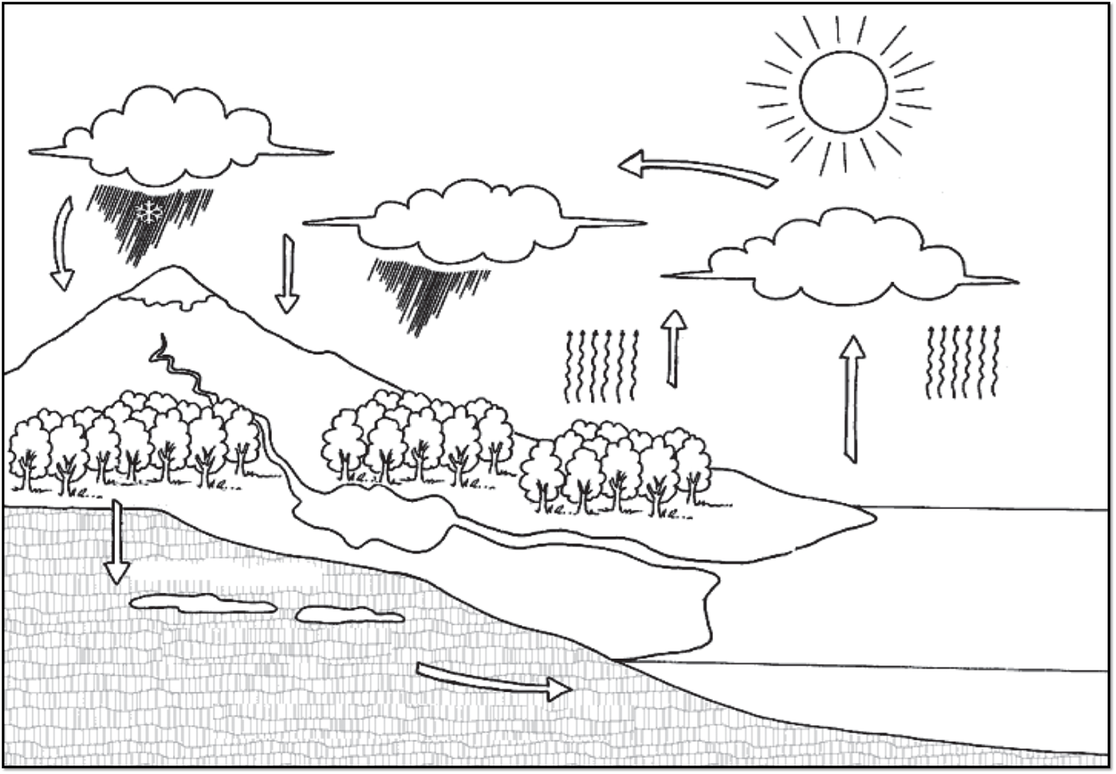 Черно белая простая схема круговорота воды в природе